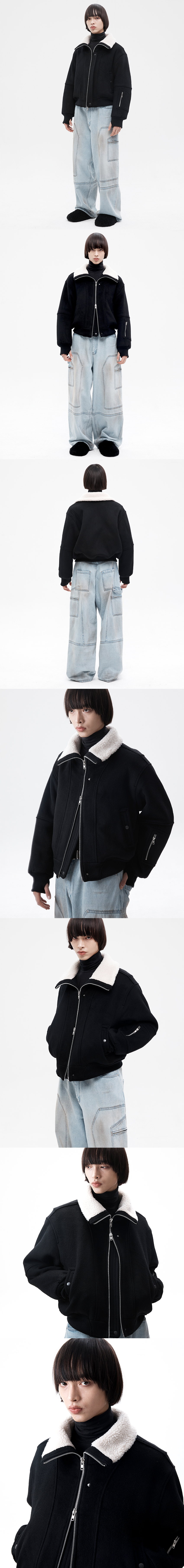 지퍼를 활용하여 다양한 네크라인 연출이 가능한 블루종입니다. 탄탄한 울 이중지 소재로 제작되어 따뜻하고 편하게 입기 좋습니다. 세미 오버핏 실루엣에 균형감이 좋아 데일리로 편하게 입기 좋습니다. *2온스 압축 하스 솜을 충전하여 한겨울 착용 가능합니다** -DETAIL- 1.소매 시보리 핑거 홀 디테일 2.입체 절개 3.등판 사이드 절개 디테일 4.2way 스냅 플라켓 디테일 5.소매 하단 카고 포켓 디테일 6.라운딩 시보리 디테일 -COMPOSITION- 울90% 나일론10%/lining-폴리에스테르 100% /YKK 2way zipper(japan)/YKK snap(japan)/필링을 최소화한 최고급 면 시보리 -model- mid long hair185/65 2사이즈 착용 mid hair183/63 2사이즈 착용