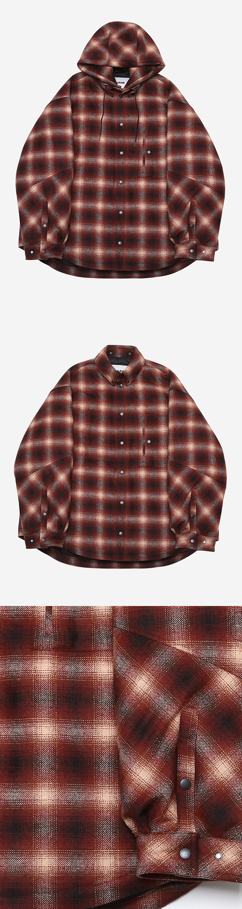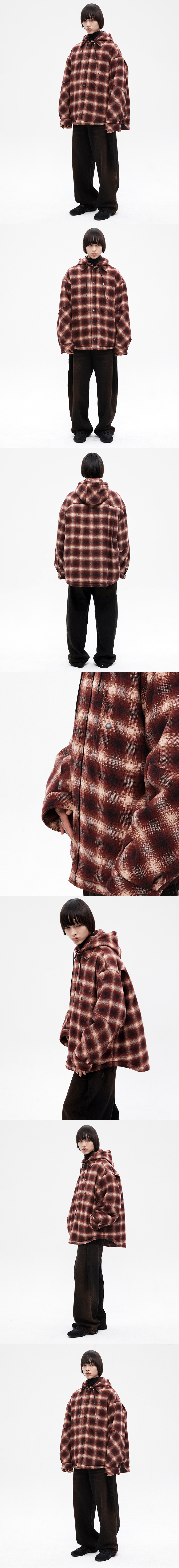 Haleine Detachable Check Hood Padding Burgundy