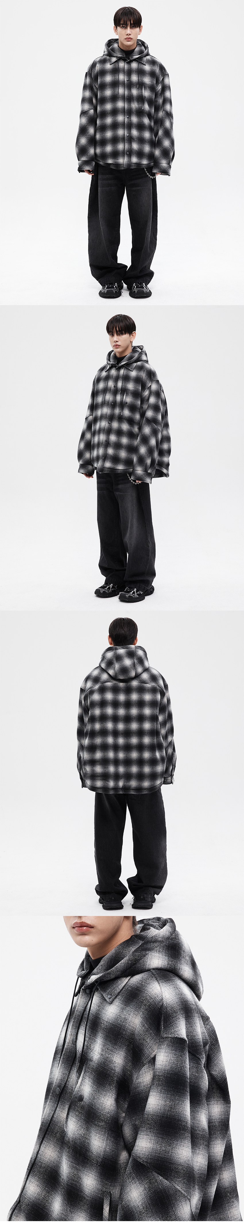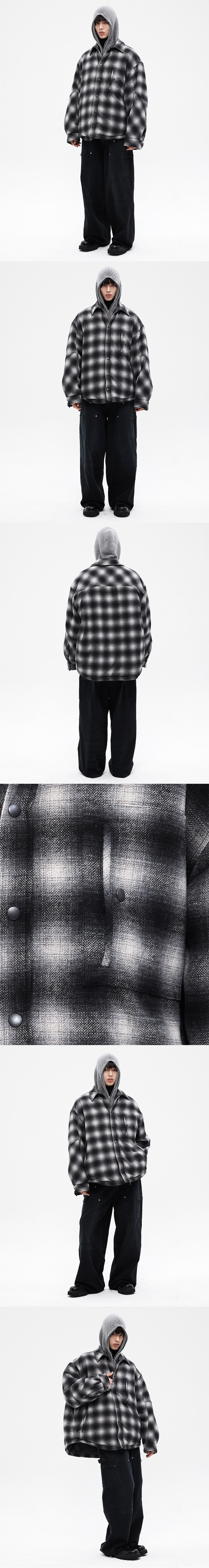 [KREAM 단독] Haleine Detachable Check Hood Padding Black