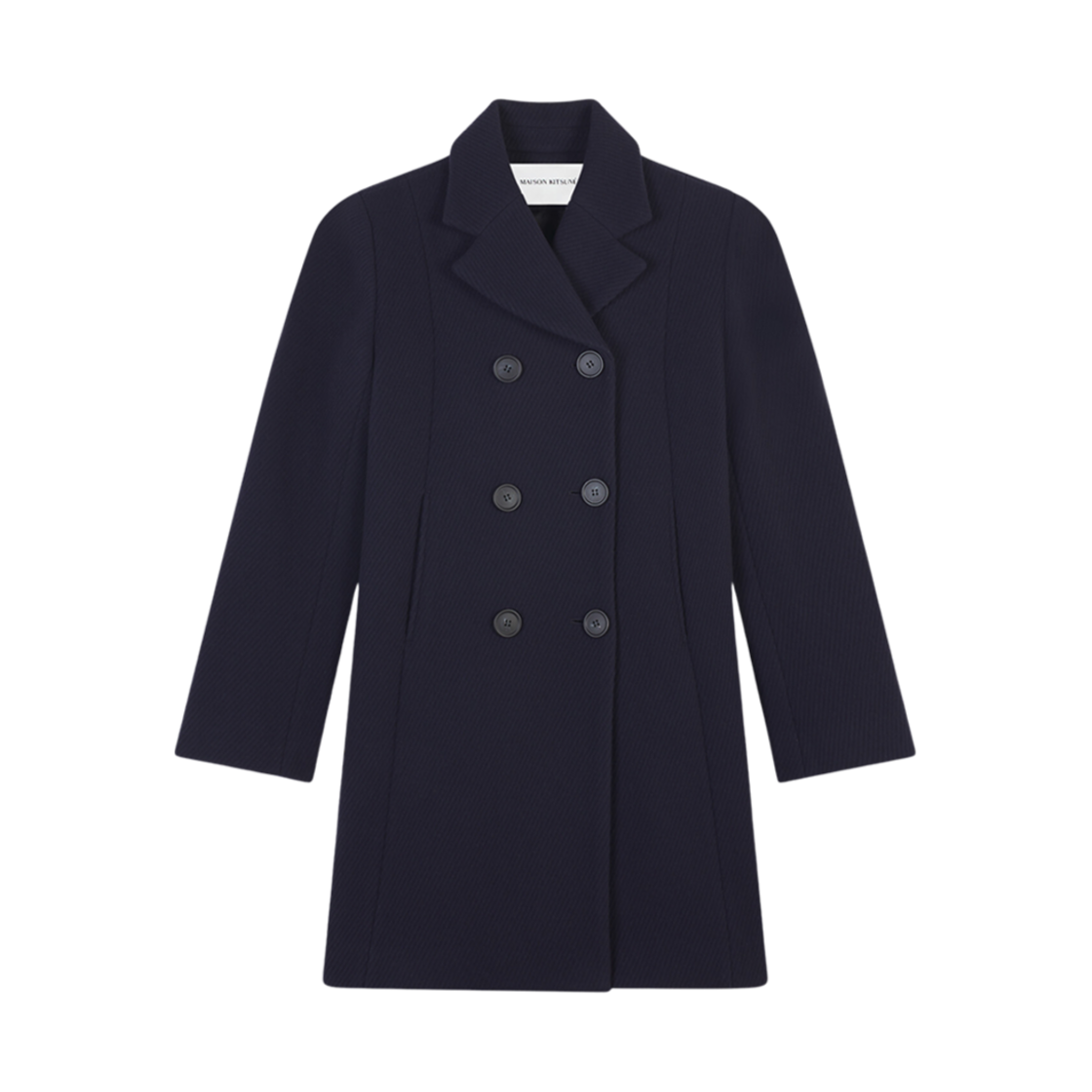 (W) 메종 키츠네 피코트 텍스쳐라이즈 울 블렌드 트윌 잉크 블루