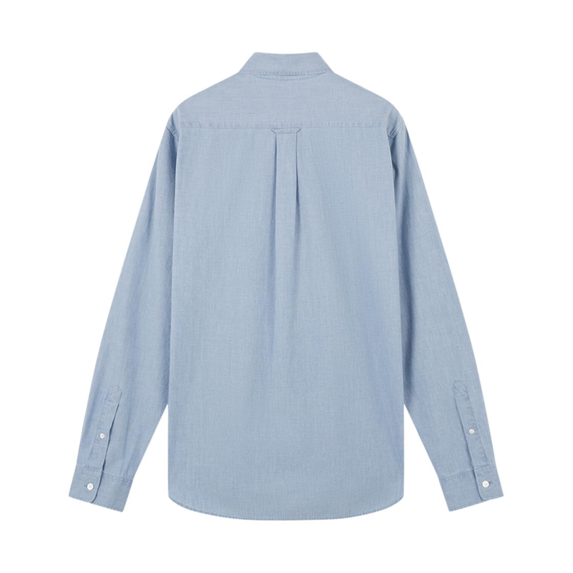 메종 키츠네 버튼 다운 클래식 셔츠 인스티튜셔널 폭스헤드 패치 샴브레이 워시드 인디고