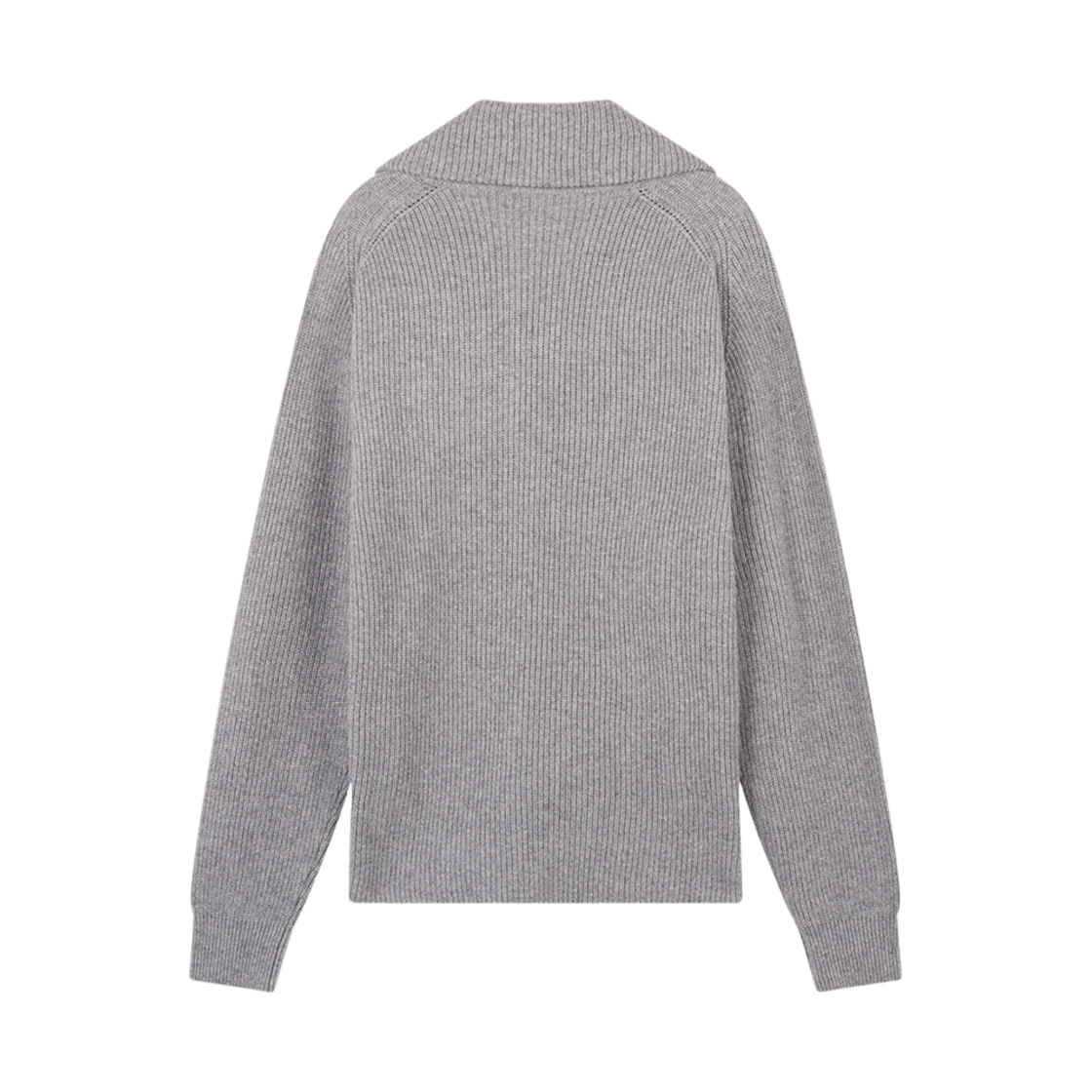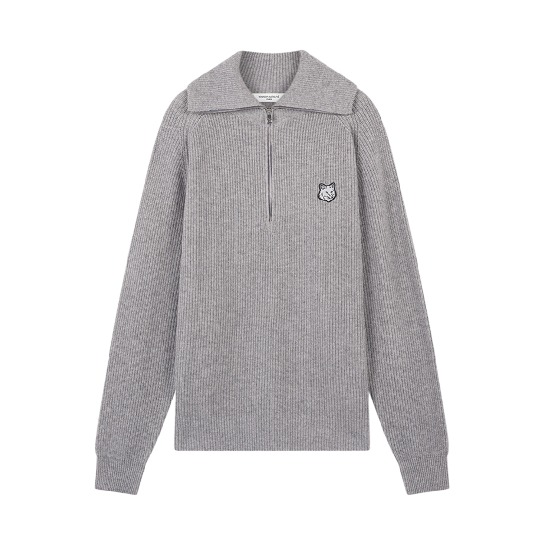 Maison Kitsune Bold Fox Head Patch Half Zip Ribbed Jumper Grey Melange