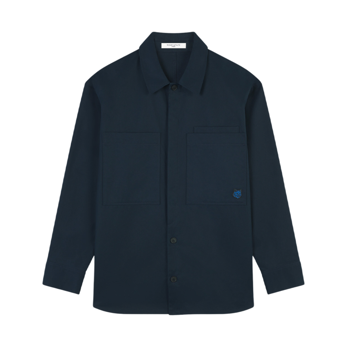 메종 키츠네 오버셔츠 볼드 폭스 헤드 패치 코튼 개버딘 잉크 블루