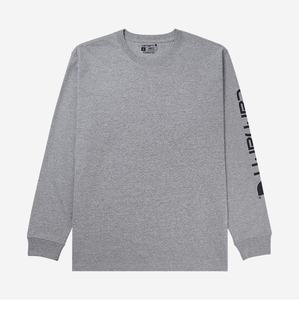 칼하트 루즈핏 헤비웨이트 레귤러 로고 슬리브 그래픽 롱슬리브 티셔츠 헤더 그레이