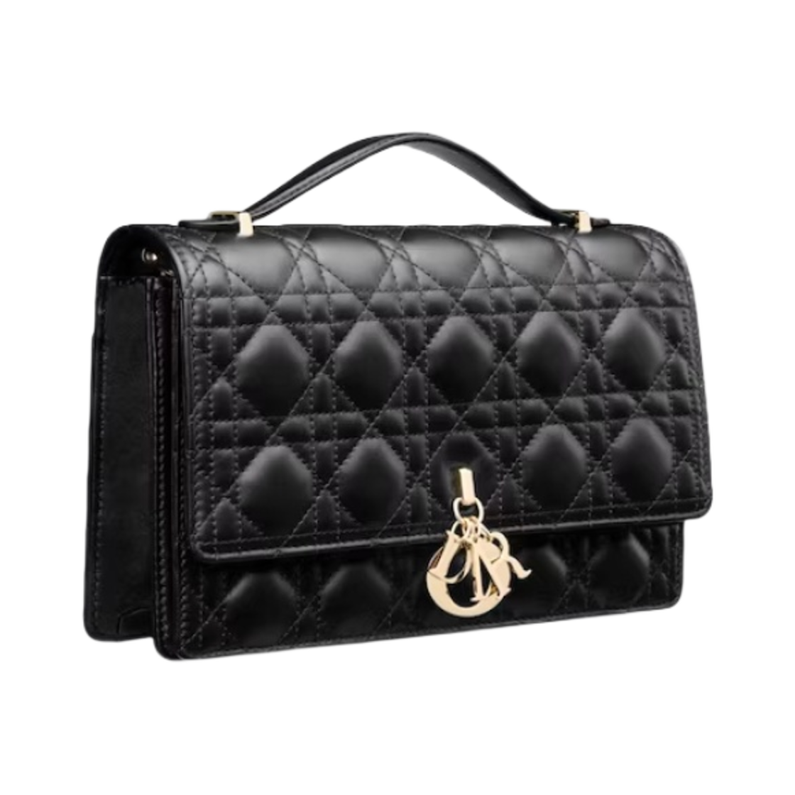 Dior Miss Dior Cannage Lambskin Top Handle Bag Black
