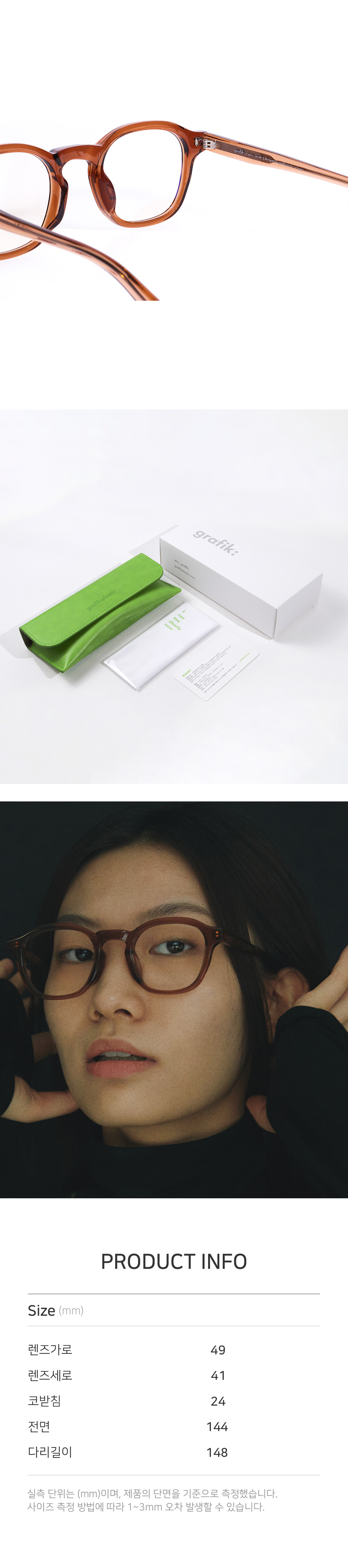 *안경테에 장착되어있는 렌즈는 프레임의 형태의 변형을 막기 위한 플라스틱 데모렌즈입니다.
