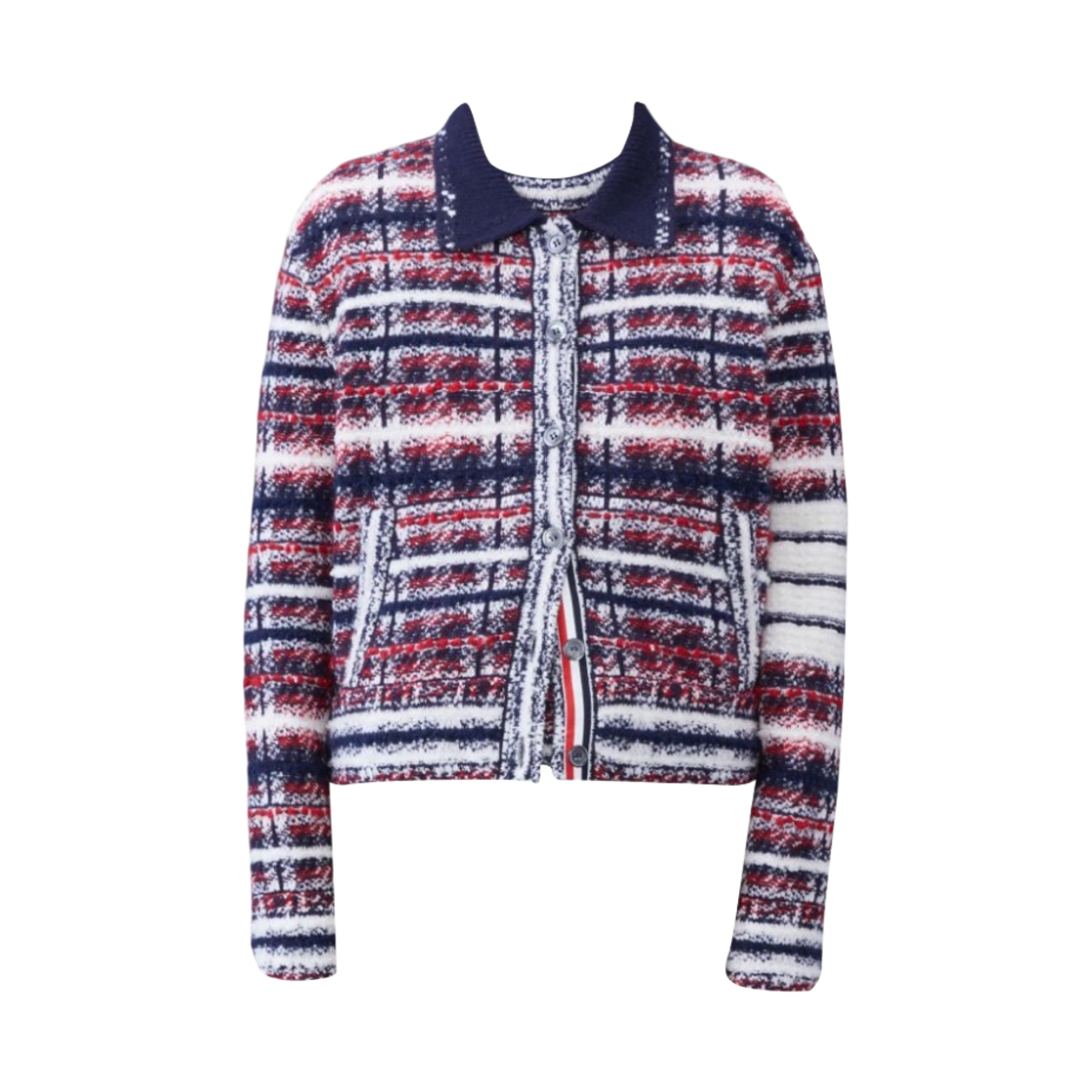 (W) 톰브라운 메리노 모헤어 사선 폴로 칼라 봄버 자켓 블루