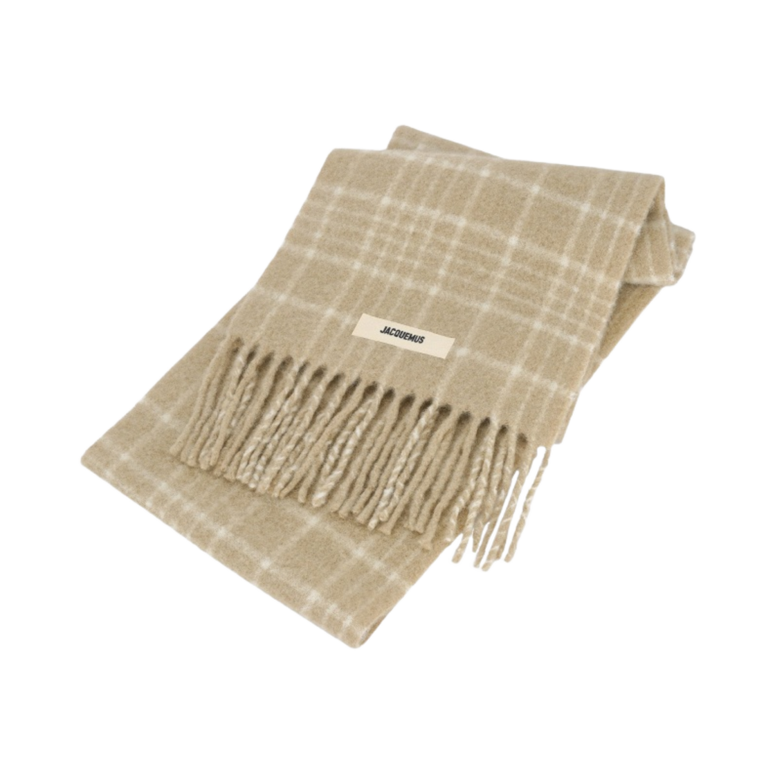 Jacquemus L’echarpe Carro Le Chouchou Jacquard Check Muffler Beige