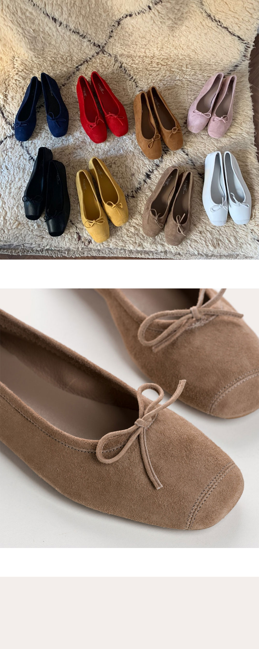 [Harmony] 시그니처 모델인 Harmony모델입니다. 연하고 부드러운 가죽이 특징으로 신었을때의 착화감이 좋은 것은 물론이고 페미닌한 무드의 핏감으로, 발레리나 슈즈를 연상시키는 슈즈입니다. 정사이즈로 나왔으며, 소재 특성상 늘어남이 있습니다. [사이즈 가이드] 35=225~230 36=230~235 37=235~240 38=240~245 39=245~250 40=250~255 [취급 시 주의사항] - 얼룩이 생겼을 경우 가죽 전용 클리너로 닦아주세요. - 첫 시착시 스웨이드 부분의 묻어남이 있을 수 있으니, 가급적이면 흰색 양말은 피해주세요. - 형태를 유지하기 위해서 신문지를 넣어두면 오랜 기간 신을 수 있을 수 있습니다. - 스웨이드 부분의 이염은 스웨이드 전용 세척제를 이용해 닦아주세요. - 가죽 신발 보관 시에는 온도와 습도가 낮고 바람이 잘 통하는 곳에 보관해 주세요. - 물에 닿았을 경우 신문지를 넣어 습기를 제거하고, 그늘에서 말려주세요.