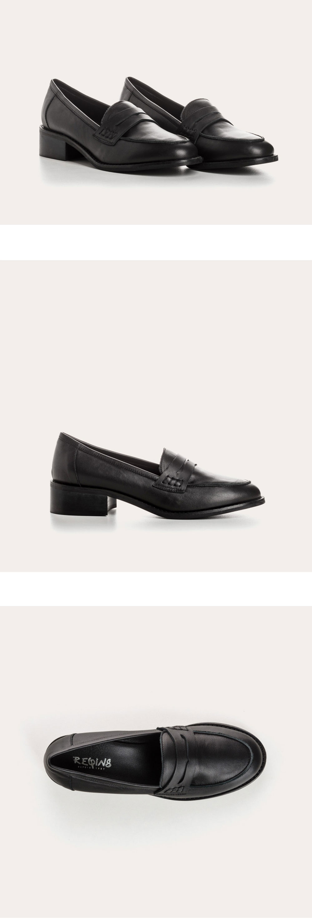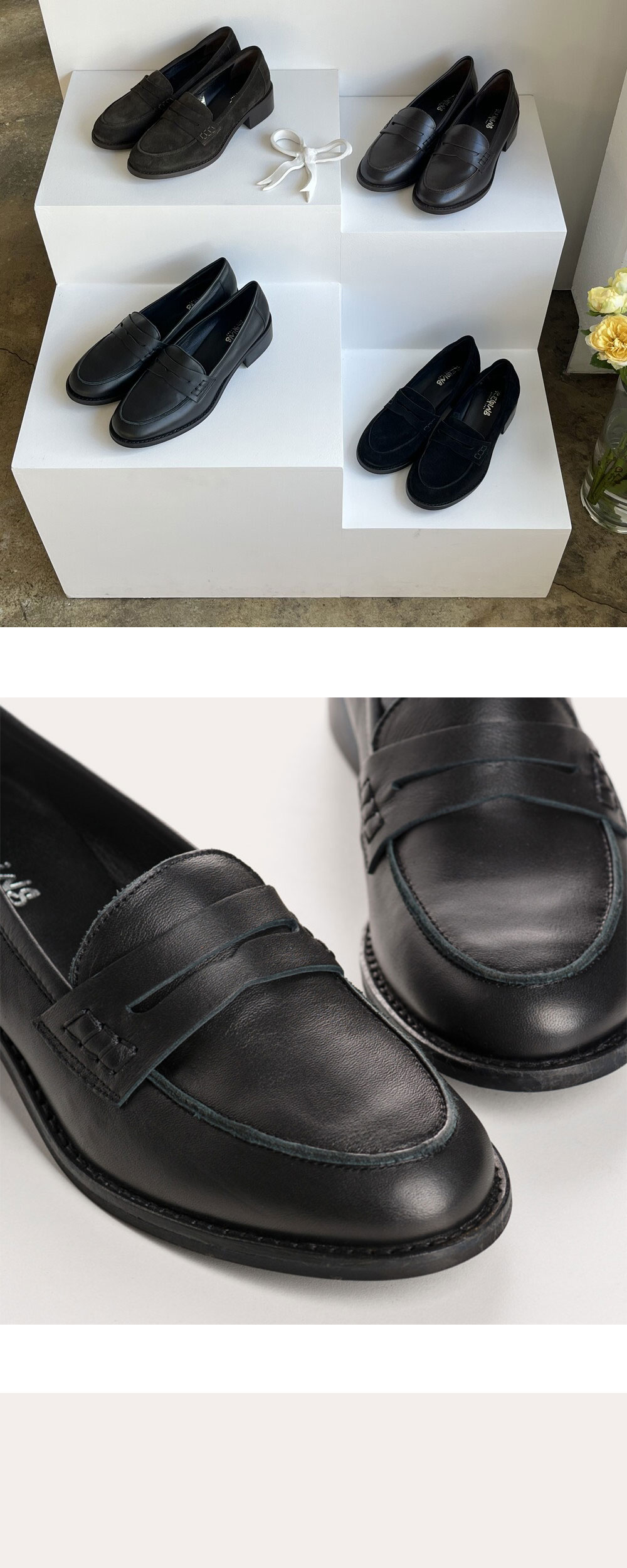 [Joya] Joya 는 흐꺙에서 출시한 로퍼 슈즈입니다. 클래식한 페니 로퍼 디자인으로 어떤 아웃핏에도 스타일링 가능하며, 오래 걸어도 편안한 착화감을 자랑합니다. 3.5cm의 적당한 굽이 있어 페미닌한 쉐입이 느껴지면서도 착용시 중성적인 매력도 느껴져 활용도가 높은 모델입니다. 전체 소가죽으로 제작되었으며, 견고하고 퀄리티 높게 제작되어 오래 소장하며 착용하실 수 있습니다. 사이즈는 정사이즈 추천드리나 정사이즈 착용시 발등을 많이 덮는 디자인으로 조금 답답하게 느껴지실 수 있으며, 발등이 높거나 발볼이 넓으신 분들은 한 사이즈 업하는 것을 추천드립니다. Cuir = 무광 가죽 소재 [사이즈 가이드] 36=230~235 37=235~240 38=240~245 39=245~250 40=250~255