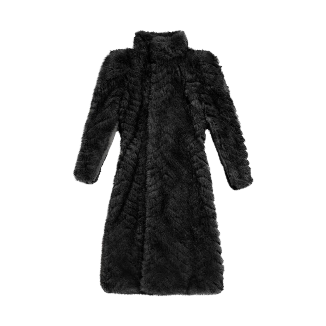 (W) Balenciaga Round Shoulder Fitted Coat Black