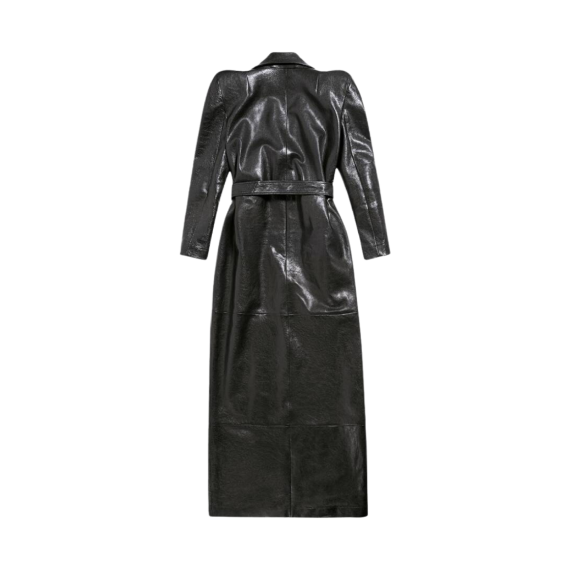 (W) Balenciaga Round Shoulder Maxi Trench Coat Black