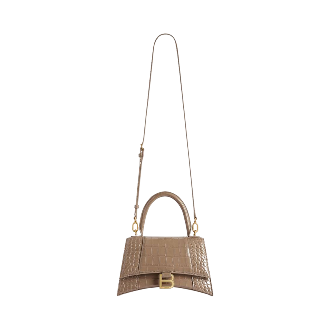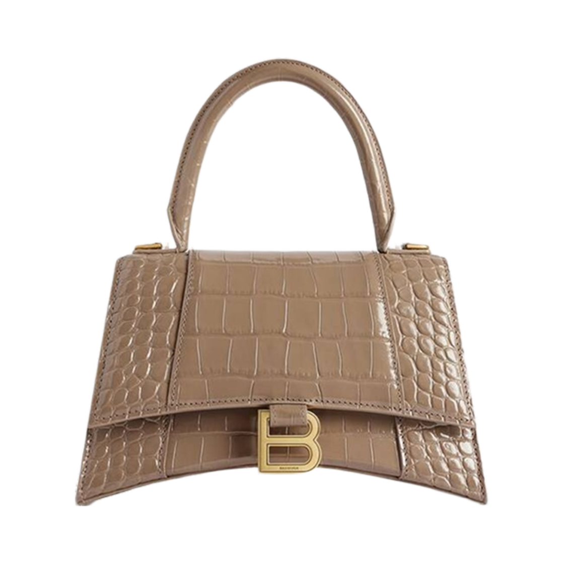 Balenciaga Hourglass Small Handbag Crocodile Embossed Light Brown