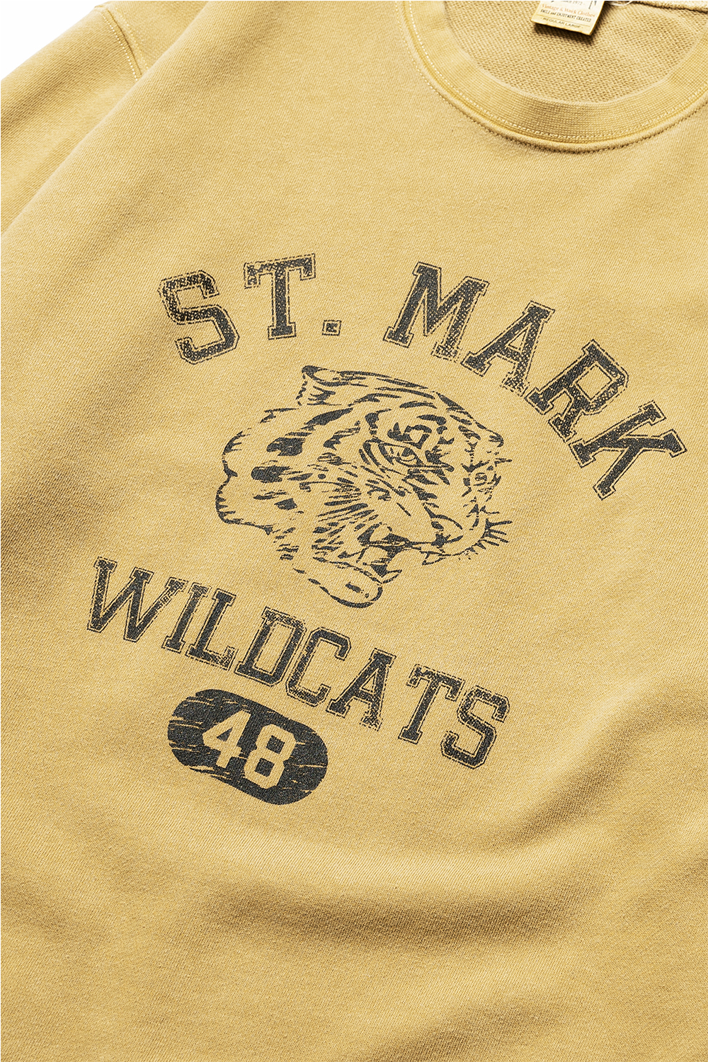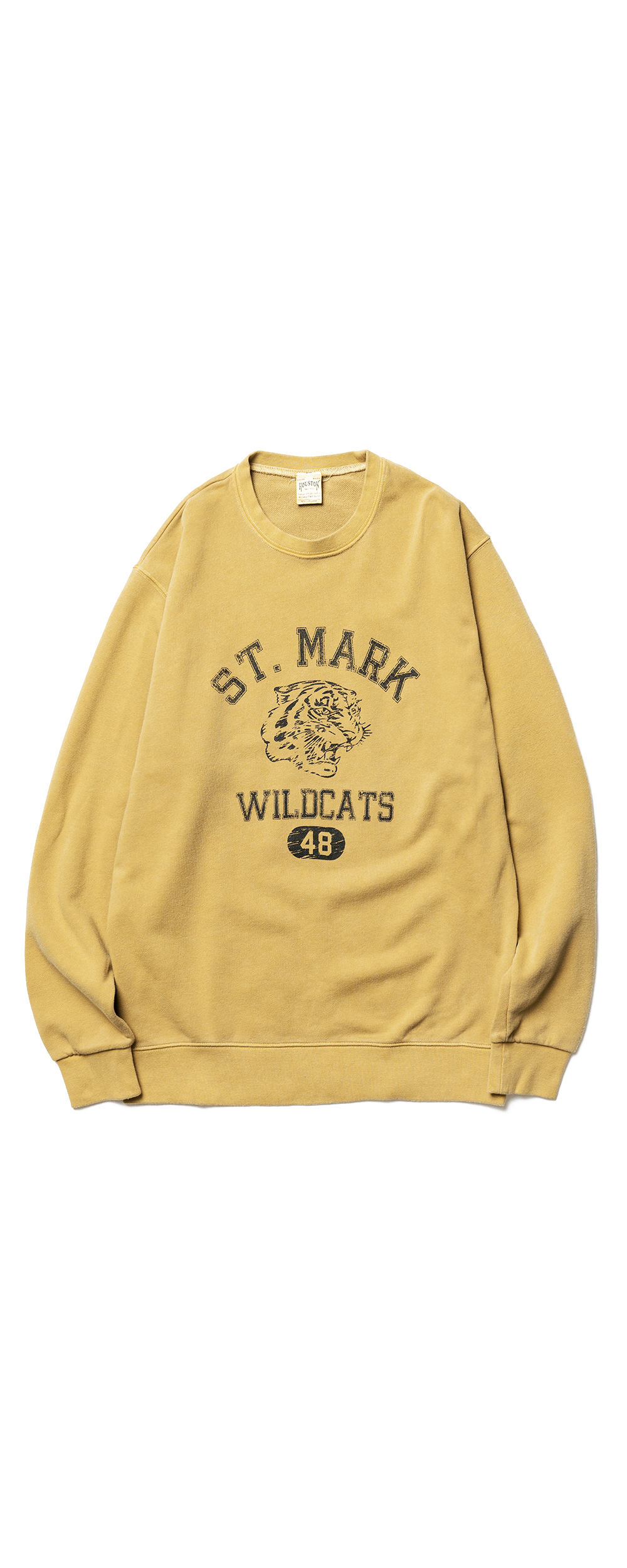 Houston Japan 22157 Pigment Print C/N Sweat (Wild Cats) - Yellow 9.7oz 원단으로 제작된 더미 스웨트 입니다. 피그먼트 가공을 거쳐, 빈티지한 분위기가 특징입니다.