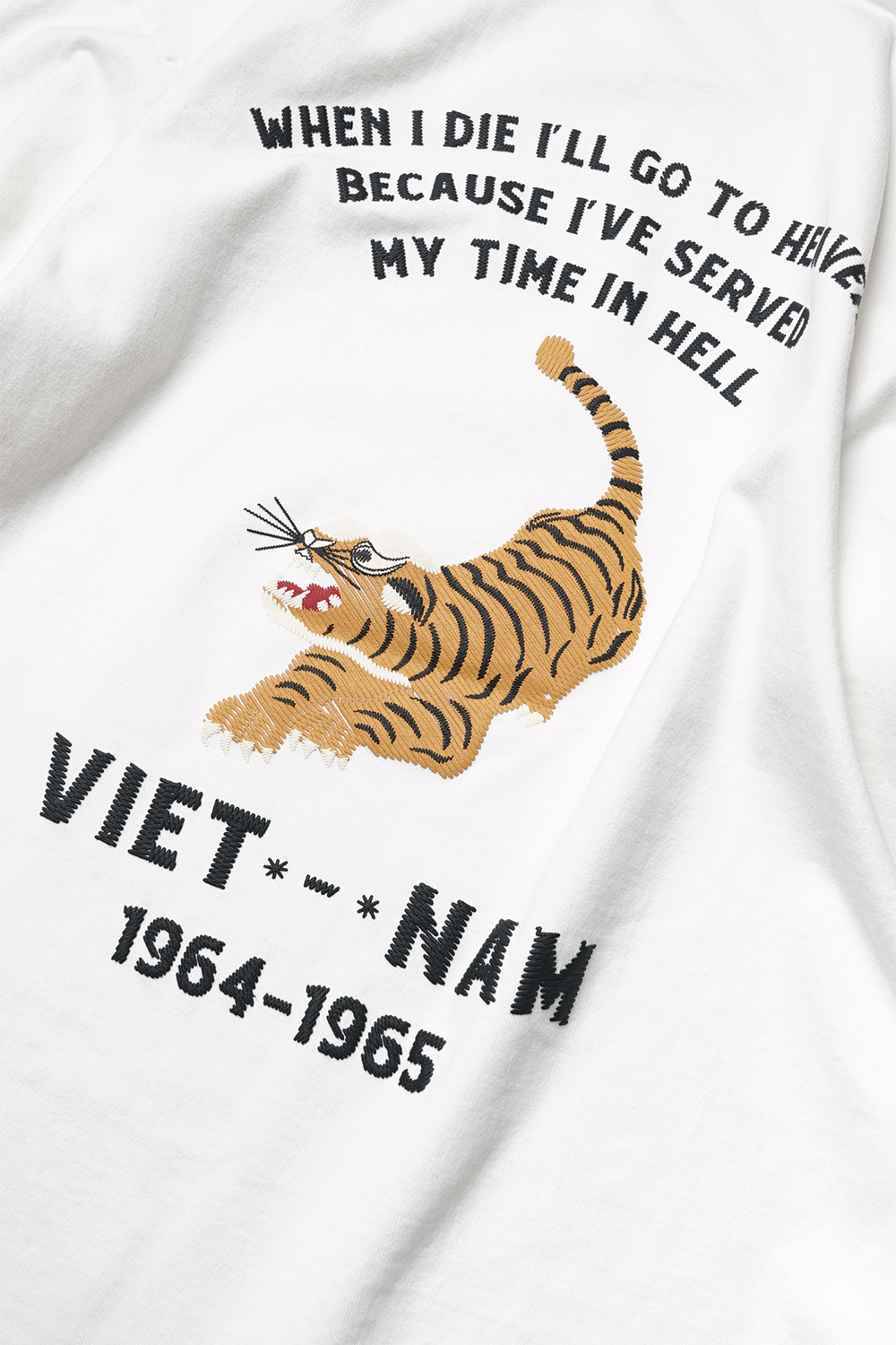 Houston Japan 22152 Souvenir L/S Tee (Tiger) - White 무게감 있는 원단을 사용하여 제작된, 수베니어 프린트 티셔츠입니다. 발포 프린트를 채용하여, 자수와 같은 입체감을 재현하였습니다.
