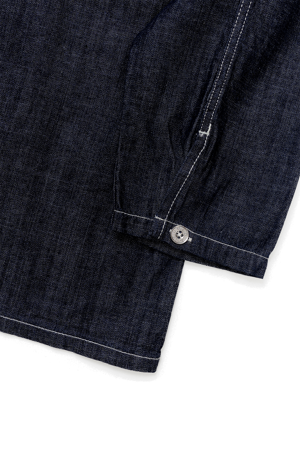 Houston Japan 40696 USA Cotton Pullover Shirt - Indigo US ARMY 데님 풀오버 셔츠입니다. 프론트의 양측으로 포켓이 위치해 있으며, 더블 스티치 봉제가 특징입니다. 메탈버튼에는 US ARMY 텍스트가 각인되어 있으며, 소매는 싱글 버튼 사양입니다. 착용시 'XL 사이즈'가 일반적인 '103 사이즈'정도입니다.