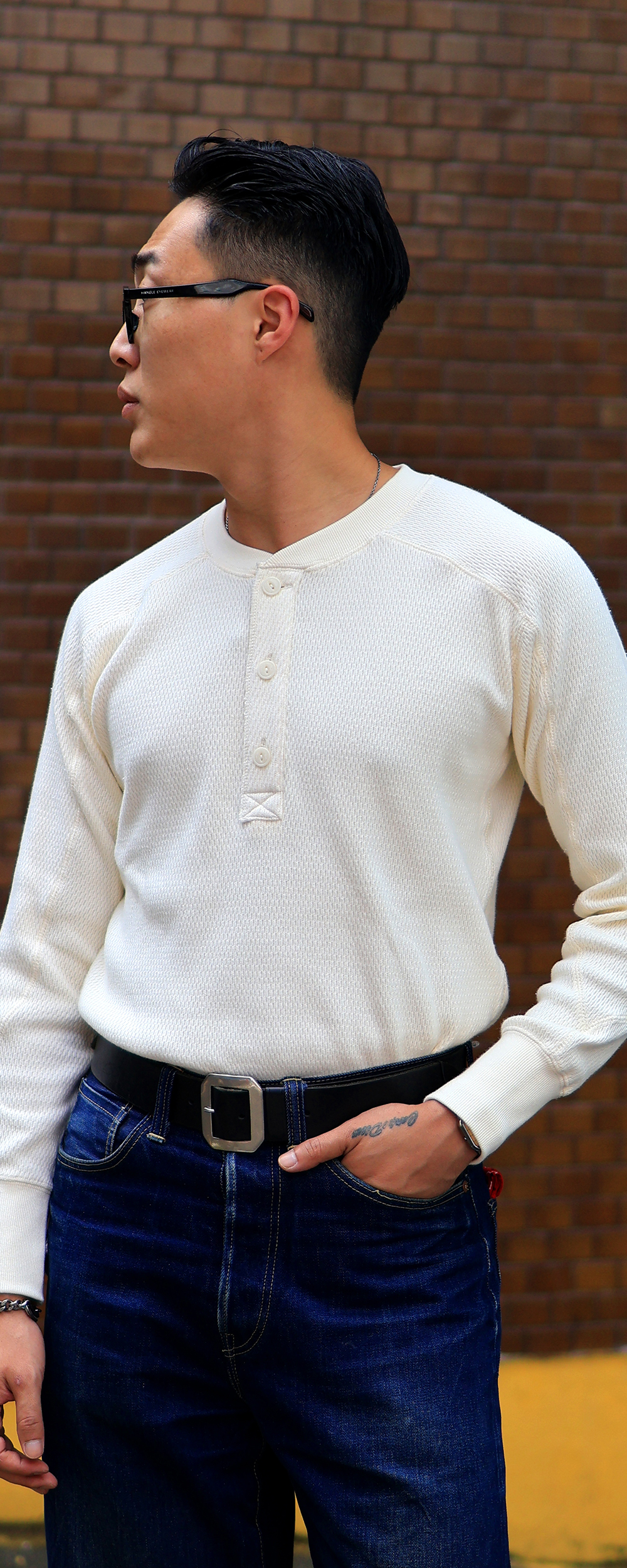 Houston Japan Heavy Thermal Henry Neck Tee - Grey 미군의 극한기용, 헨리넥 써멀셔츠 입니다. 극한기를 대비한 언더셔츠로 두꺼우면서도 신축성이 있는 원단을 사용하였습니다. * Cotton 100% * Rib : Cotton 96% / Polyurethane 4% * 빛에 의한 제품의 색감 차이가 존재 할 수 있습니다. * Made in China * 'Houston Japan'은 1947년 창업한 'Union Trading 주식회사'에서 1972년부터 전개하는 오리지널 밀리터리 브랜드입니다. 창업 당시부터 미군 서플러스를 인수하여 운영한 경험을 바탕으로 1964년 일본 최초로 항공점퍼 MA-1을 복각 제작하였으며, 현재까지 50년의 긴 역사를 가지고 있는 밀리터리, 아메리칸 캐주얼 웨어 브랜드입니다.