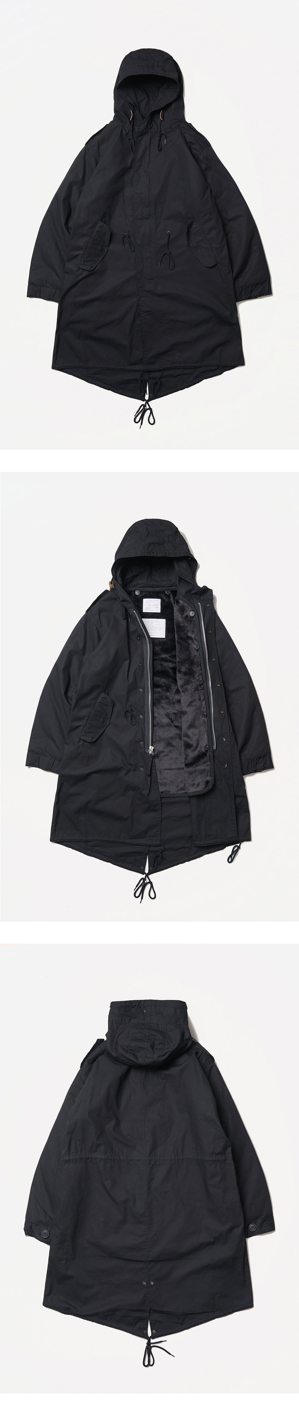 Houston Japan 5409M M-51 Parka With Liner - Black 창립 50주년 이상의 일본을 대표하는 밀리터리 브랜드 '휴스턴 재팬'에서 출시 후 현재까지 40년동안 브랜드를 대표하는 스테디셀러 아이템인 M-51 파카입니다. M-51파카는 1951년 미육군에 의해 채용된 방한 의류로 장비 위의 착용을 위해 루즈한 실루엣이 특징입니다. 후드 부분에는 레더 스토퍼가 장착된 드로우 코드가 있으며, 프론트 부분은 손잡이가 달린 YKK사의 지퍼와 스냅버튼이 있습니다. 허리 부분의 드로우 코드로 사이즈 조절이 가능하며 허리의 양측에는 스냅버튼 타입의 플랩 포켓이 위치해 있습니다. 소매에는 버튼으로 사이즈 조절이 가능하며, 피쉬테일 형태의 밑단 역시 드로우 코드로 사이즈 조절이 가능합니다. 탈착이 가능한 라이너의 내부는 부드러운 촉감의 아크릴 보아로 제작되어 보온성에 우수합니다. 착용시 S 사이즈가 일반적인 '98-100', M 사이즈가 '103-105' 정도입니다.