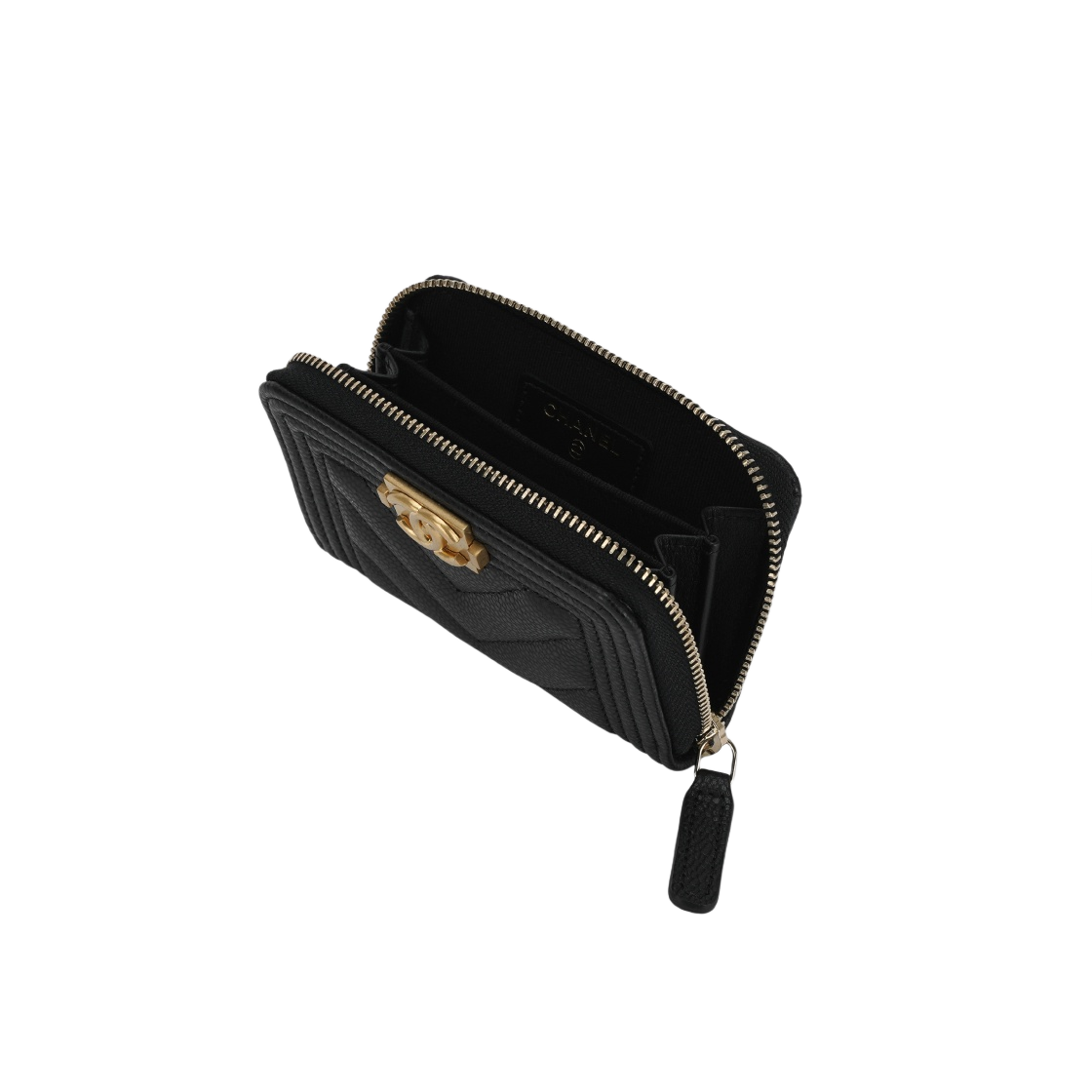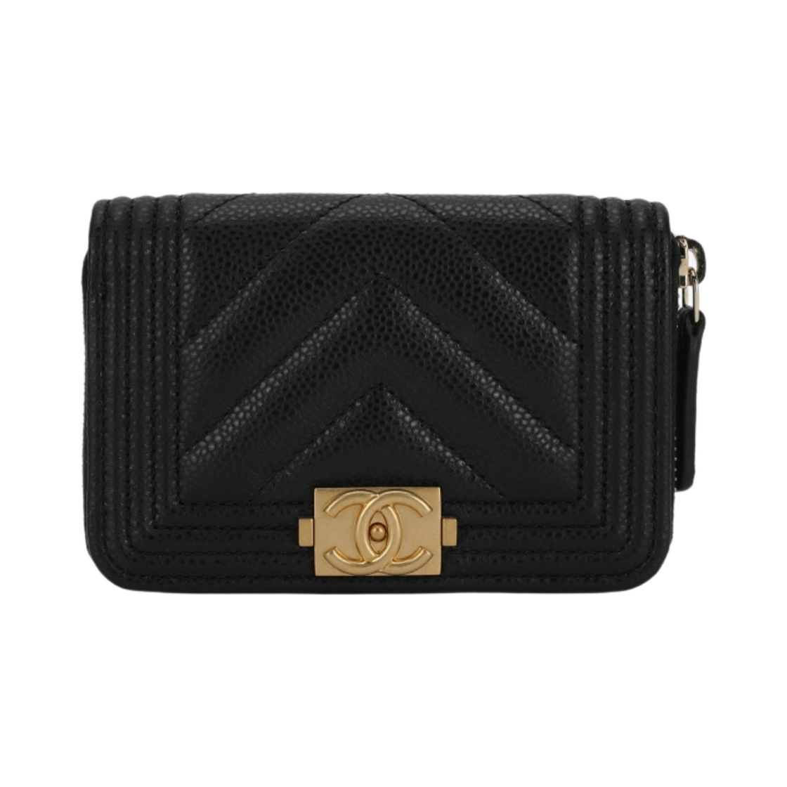 샤넬 보이 샤넬 지퍼 동전 지갑 그레인드 카프스킨 & 골드 메탈 블랙