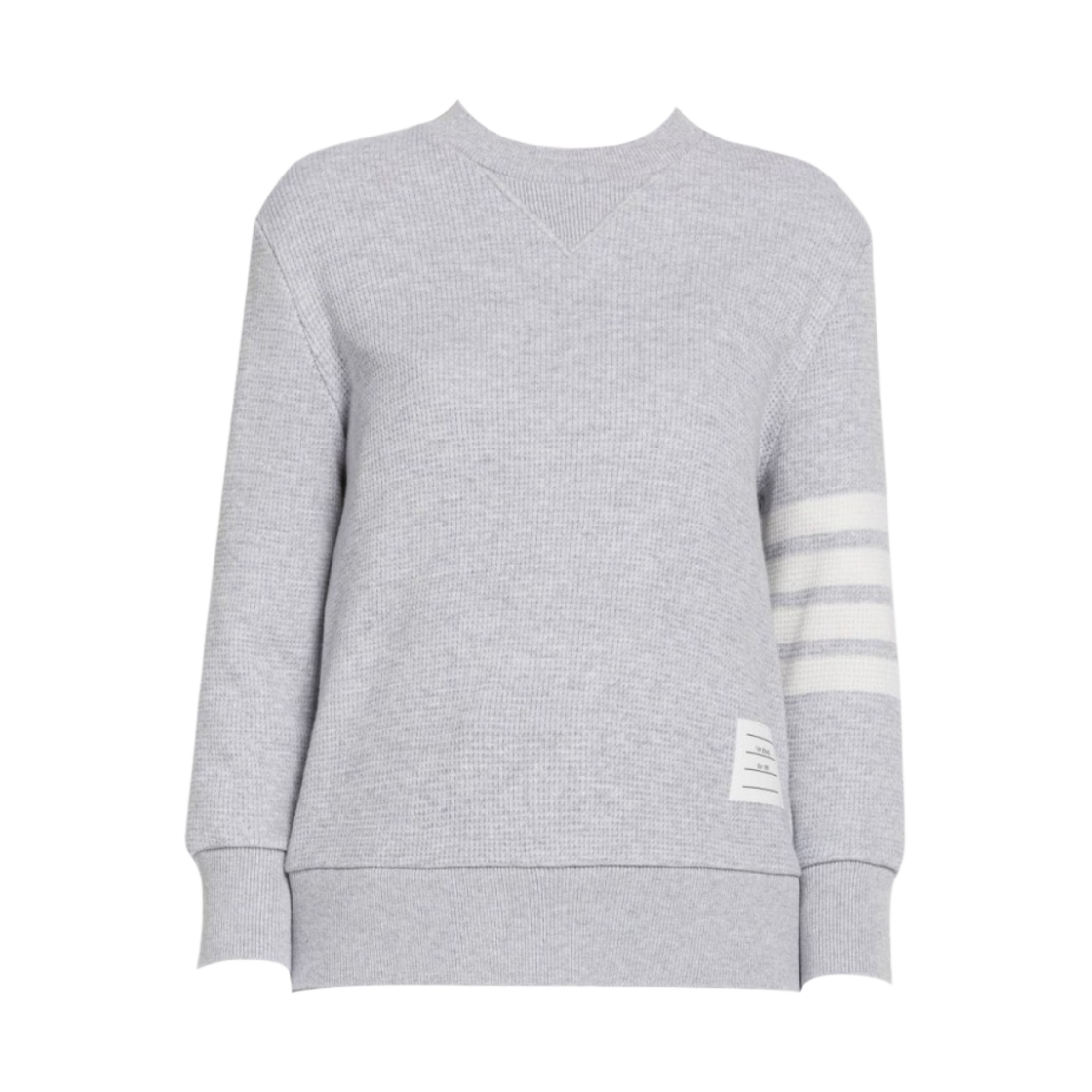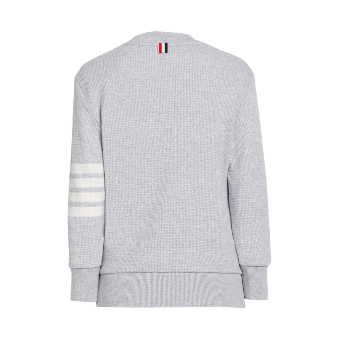 (W) Thom Browne Cashmere Wool Waffle 4-Bar Pullover Sweatshirt Light Grey