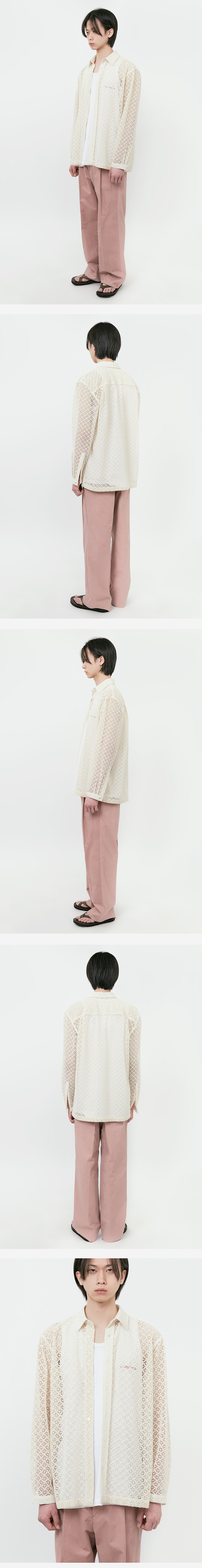 *봄, 여름 시즌에 착용하기 좋은 아이보리 컬러의 코스모스 크로셰 셔츠 *고밀도의 COTTON 100 면사와 높은 기술력으로 제직된 크로셰 원단 *카라 및 커프스에는 심지를 부착해 내구성 높임 *낙낙한 실루엣