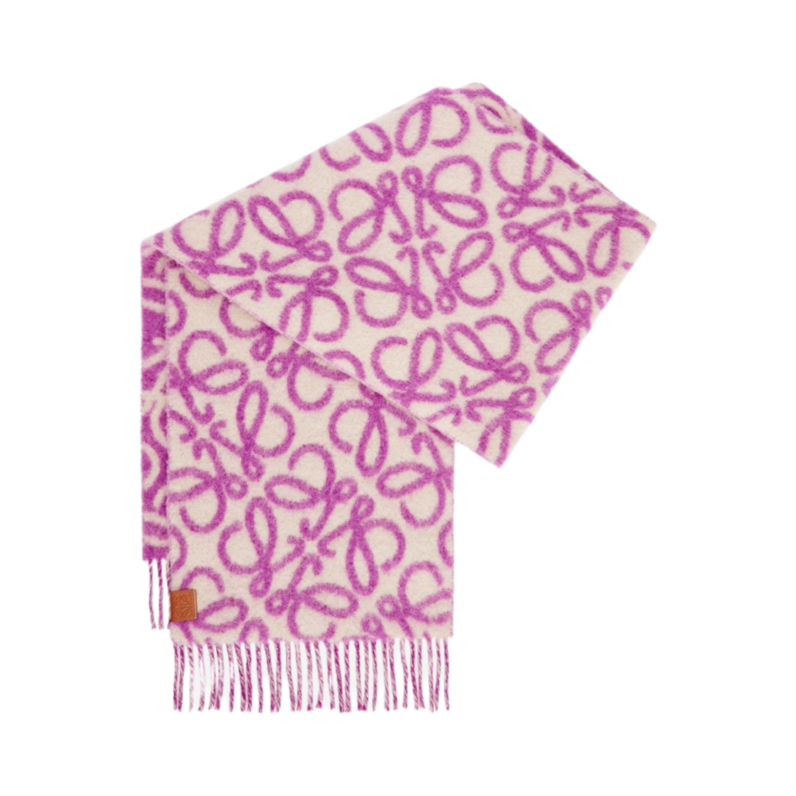 (W) Loewe Anagram Muffler In Alpaca and Wool Purple Beige Mist