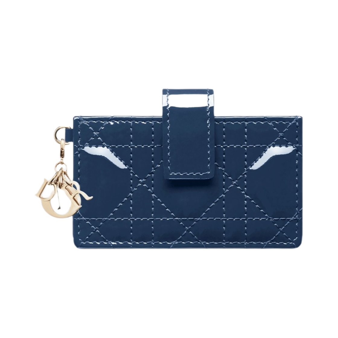 디올 레이디 5-포켓 카드 홀더 딥 오션 블루 페이턴트