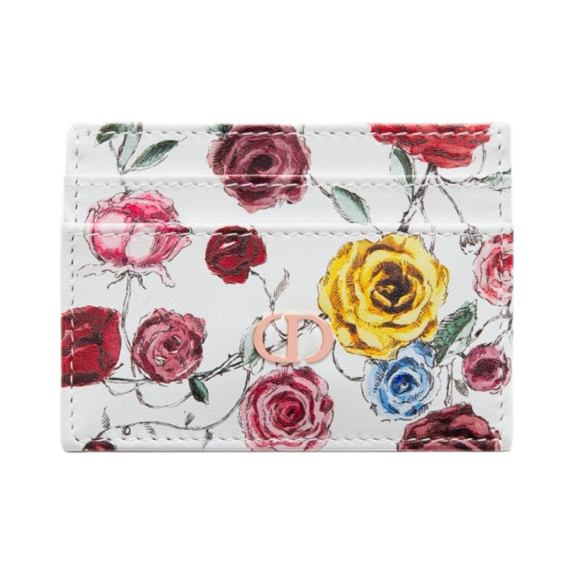 Dior Caro Five-Slot Card Holder White Multicolor Florilegio Printed
