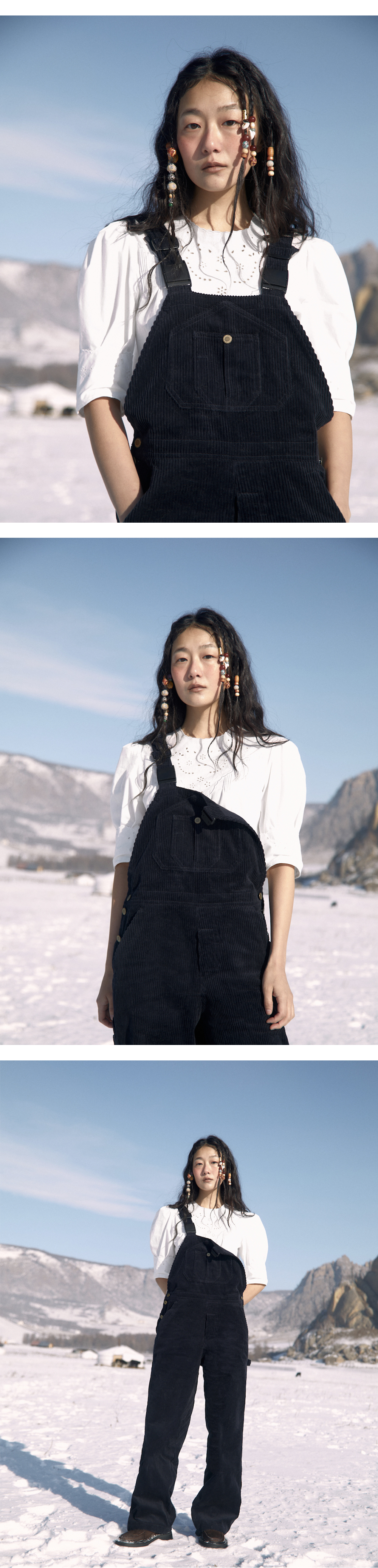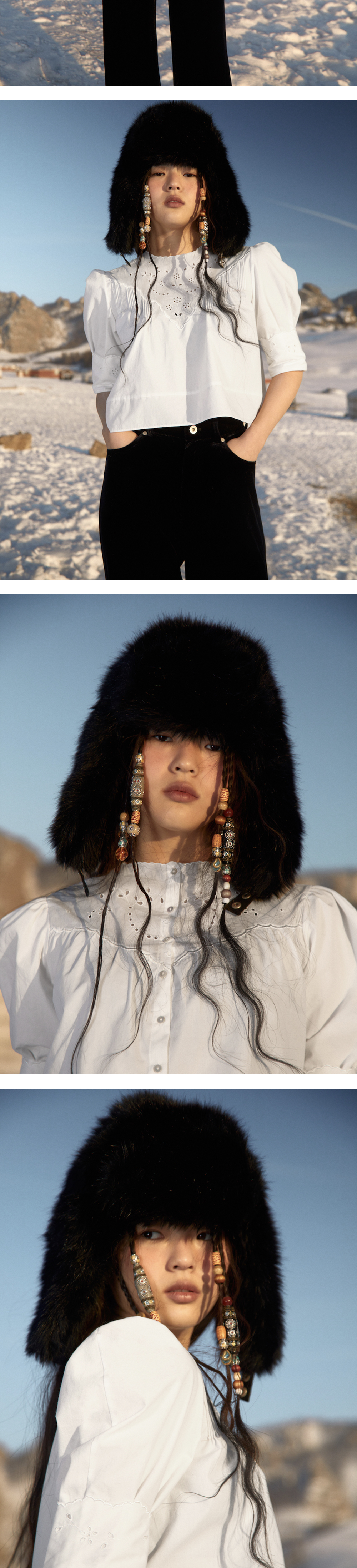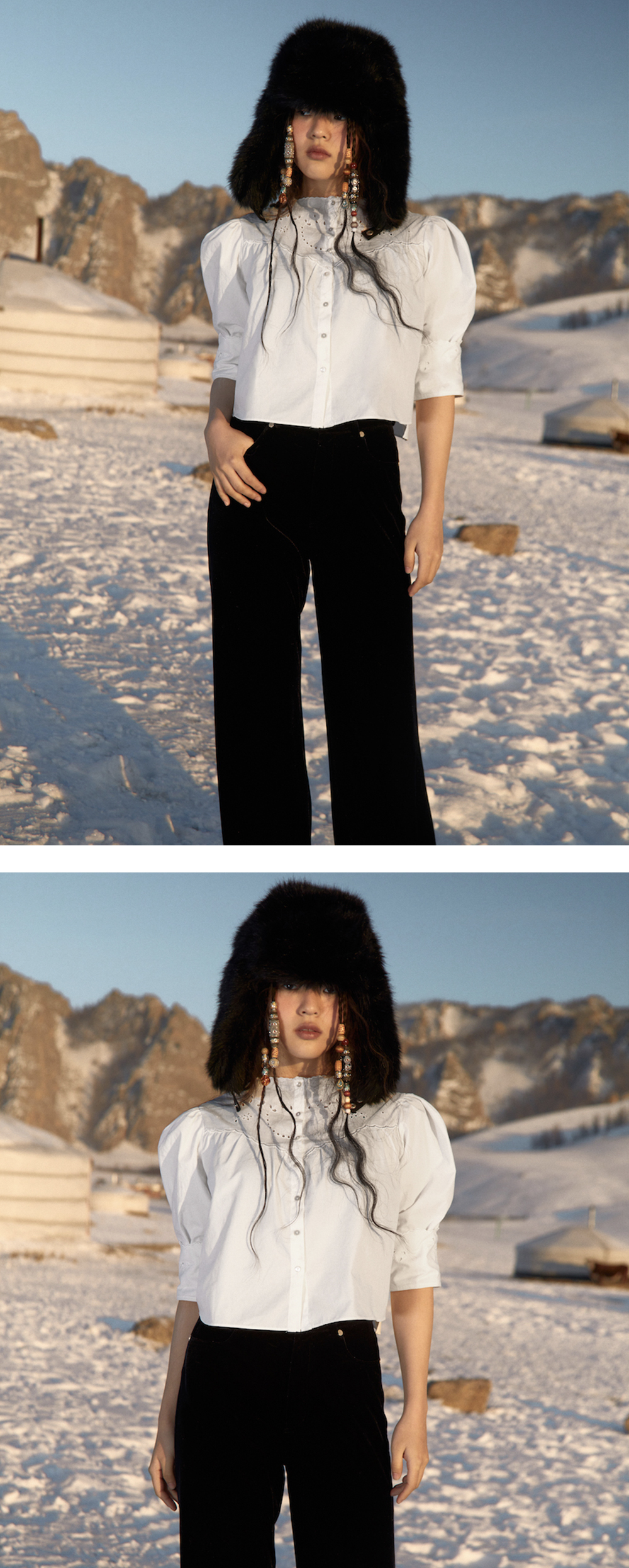 에스티유 우먼 크롭 레이스 블라우스 화이트