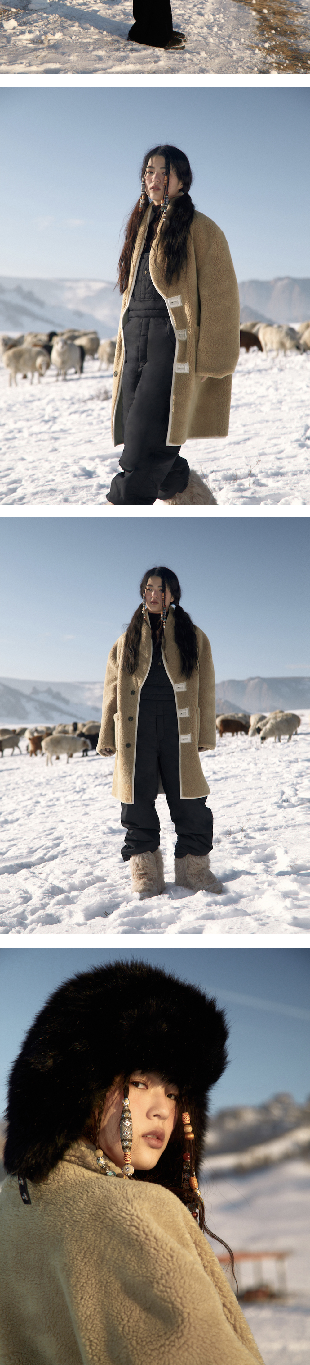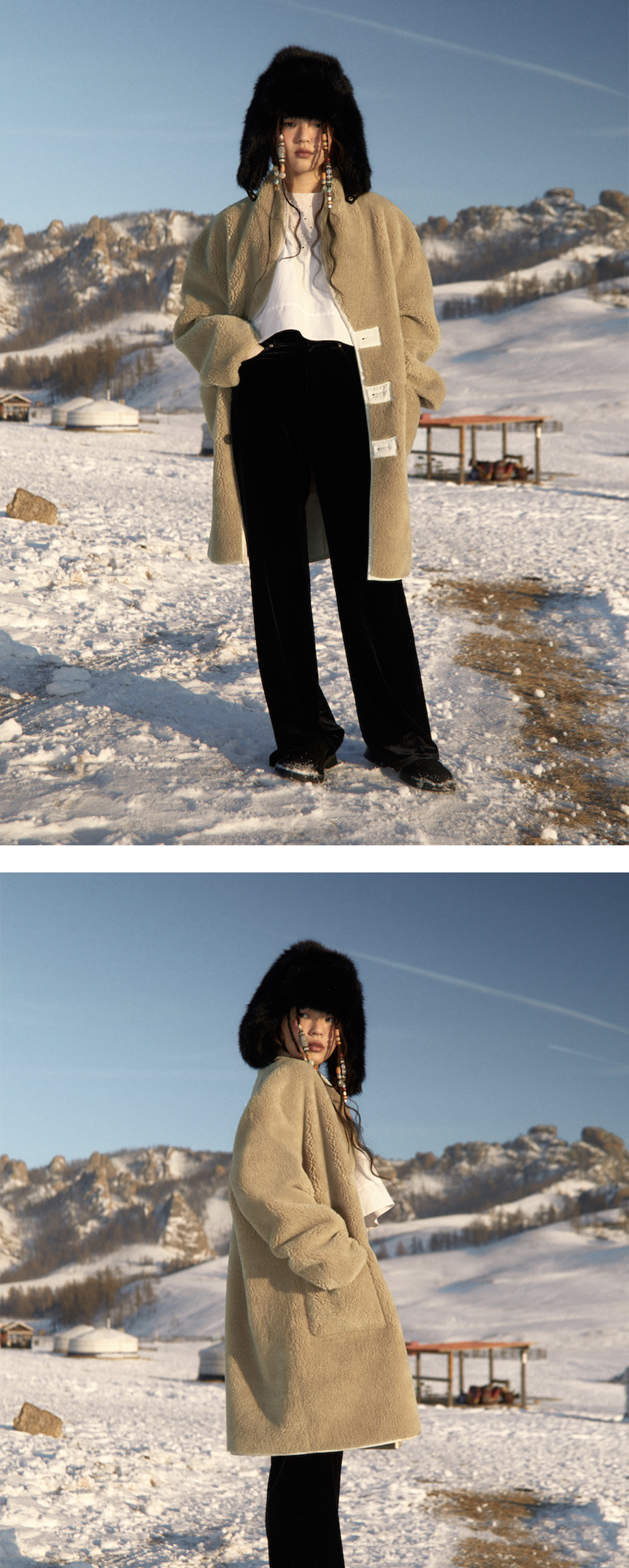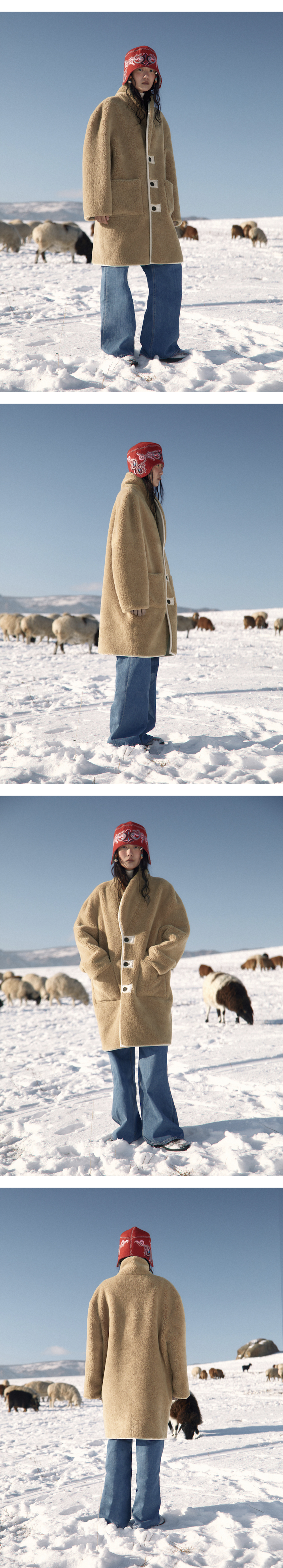 에스티유 우먼 리버시블 롱 무스탕 브라운