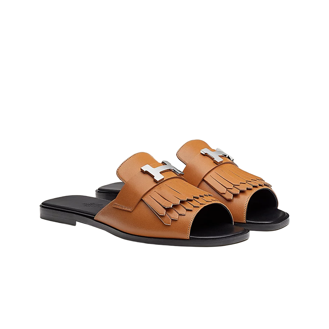 (W) 에르메스 오퇴유 샌들 카프스킨 & 팔라듐 하드웨어 베쥬 도레