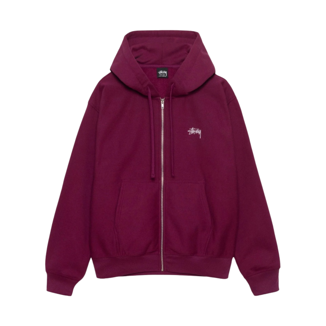 스투시 스탁 로고 후드 집업 버건디