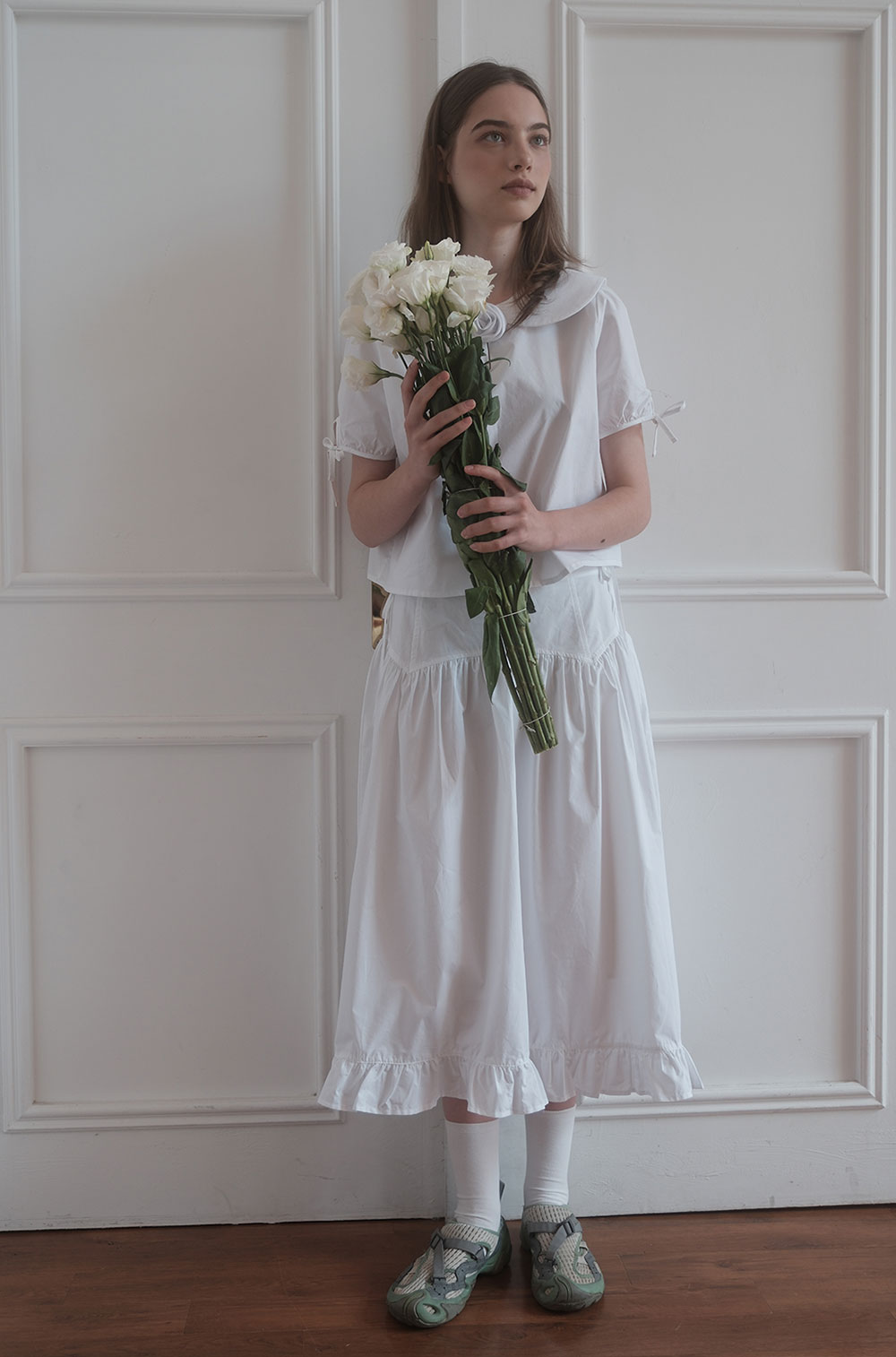 생긴스튜디오 코르셋 셔링 러플 스커트 화이트