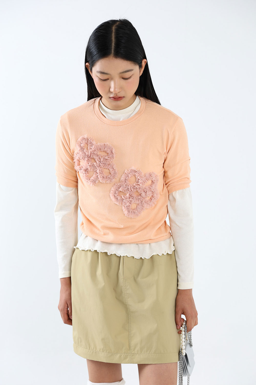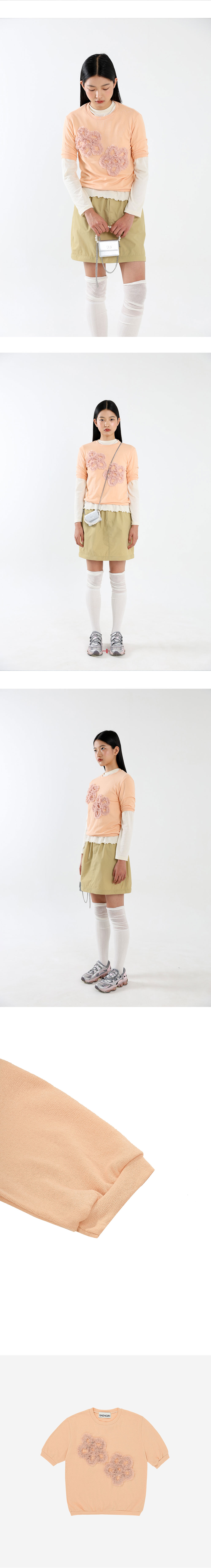 생긴스튜디오 플라워 레이스 하프 니트 애프리콧