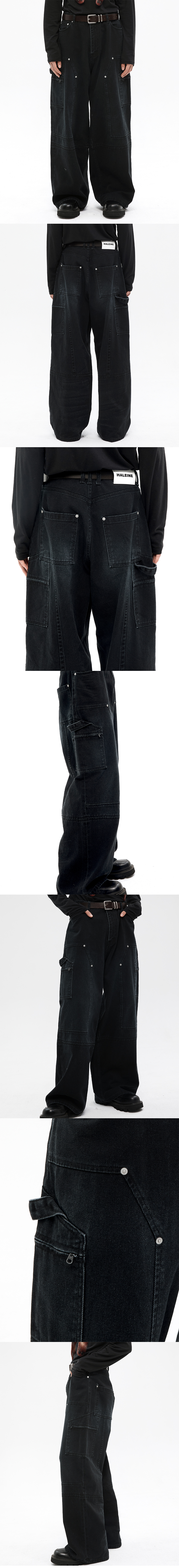 카고 팬츠와 카펜더 팬츠의 디테일을 믹스하여 유니크한 디자인으로 재해석한 진입니다. 와이드 한 실루엣으로 편하게 포인트로 스타일링하기 좋은 제품입니다. -DETAIL- 1.카펜터 2.스터드 디테일 3.밑단 스냅으로 밑단 폭 조절 가능 -model- mid long hair185/65 2사이즈 착용 mid hair183/63 2사이즈 착용 **모델은 총장이 5cm 더 긴 제품을 착용