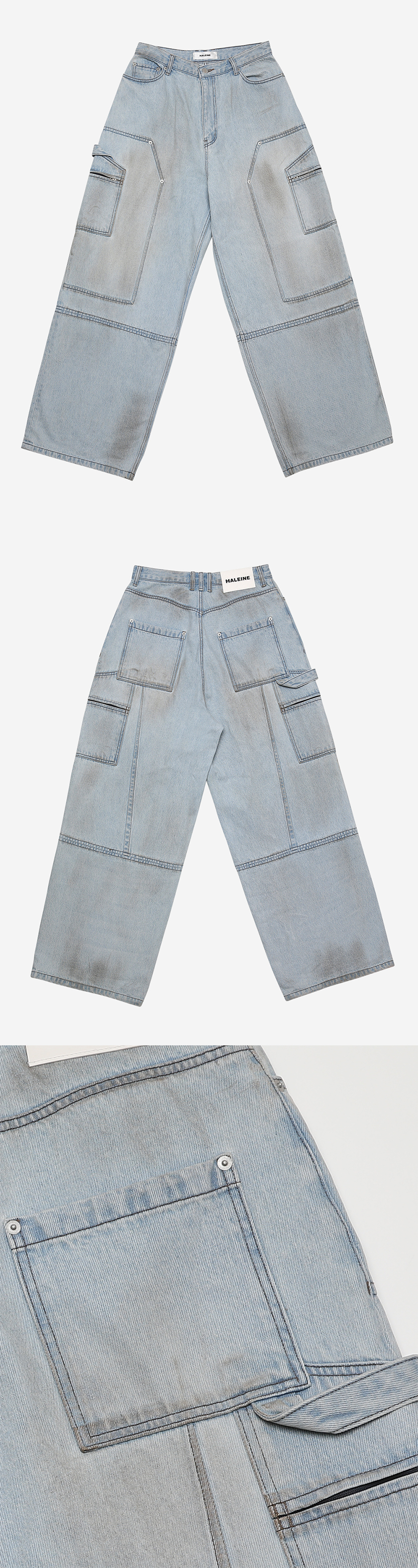 [KREAM 단독] Haleine Carpenter Cargo Dirty Washed Jean Light Blue