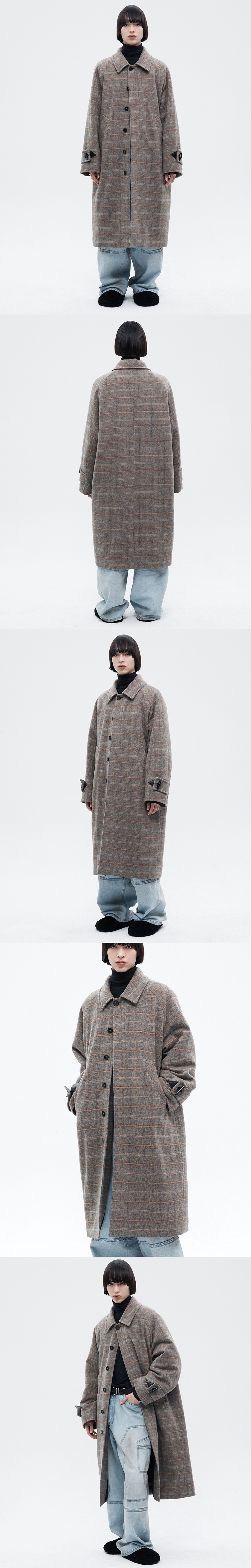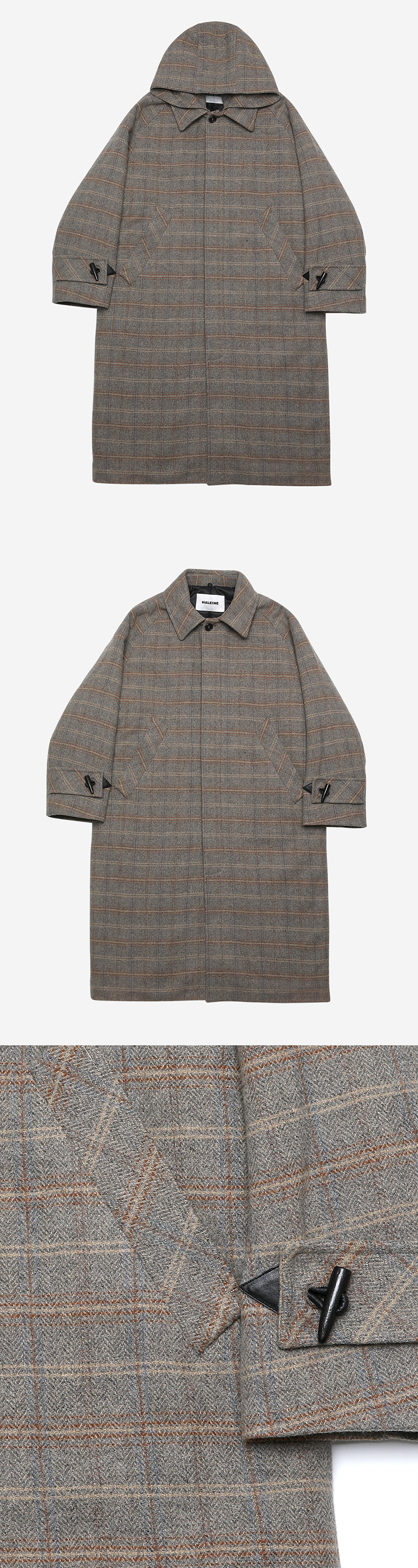 [KREAM 단독] Haleine Detachable Hood Padded Check Mac Coat Greyish Beige