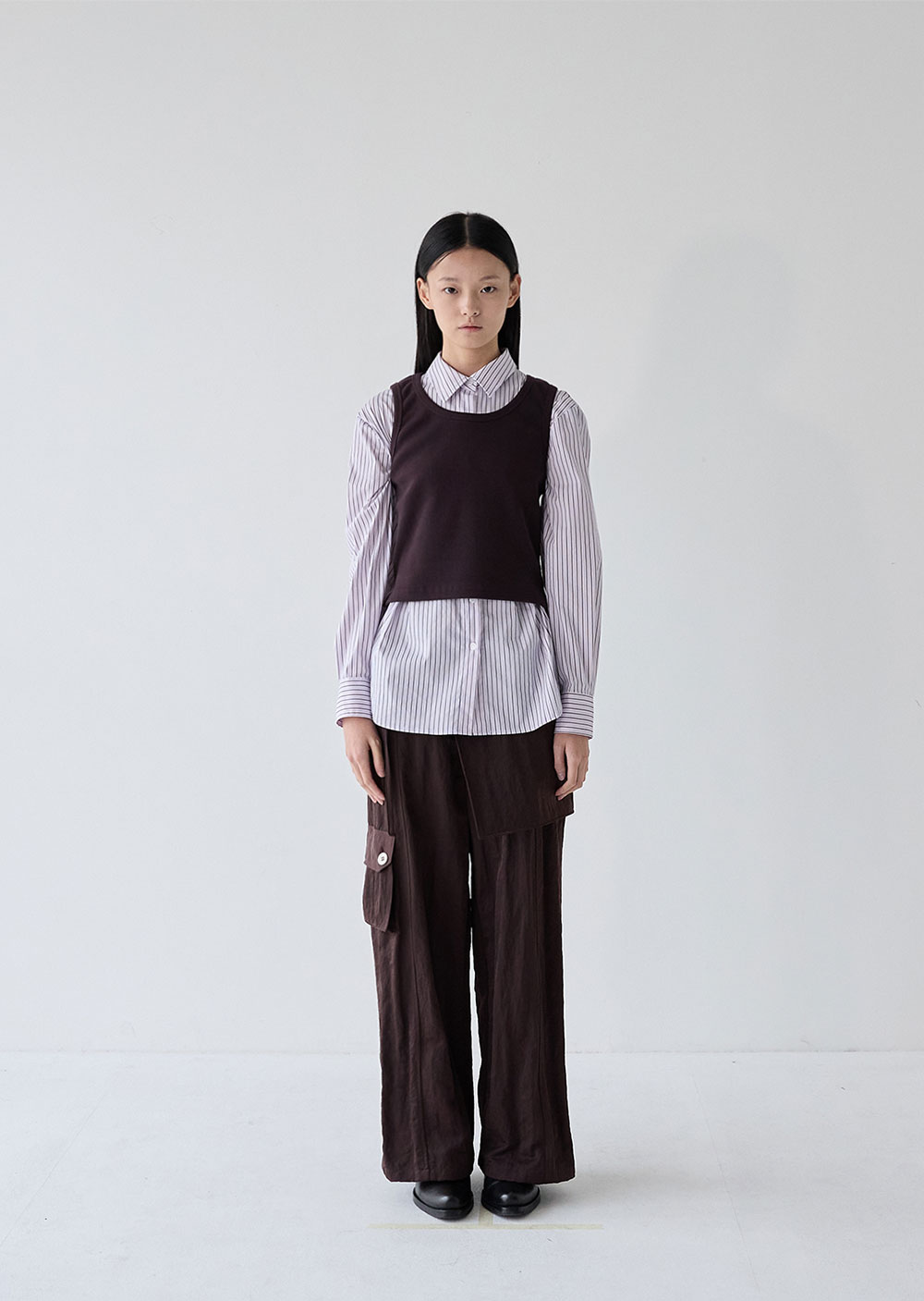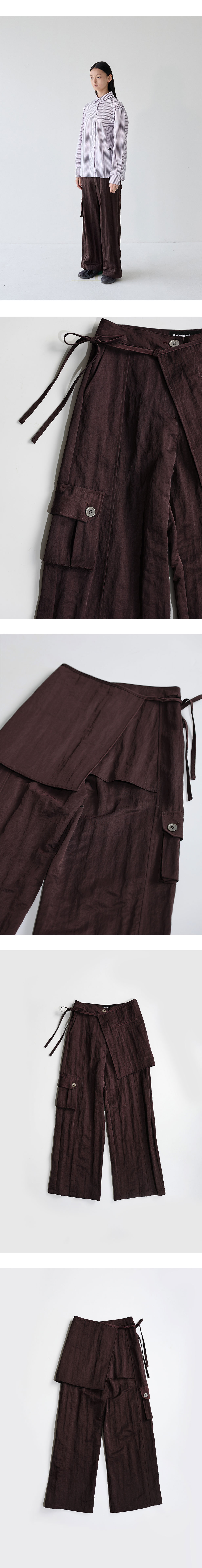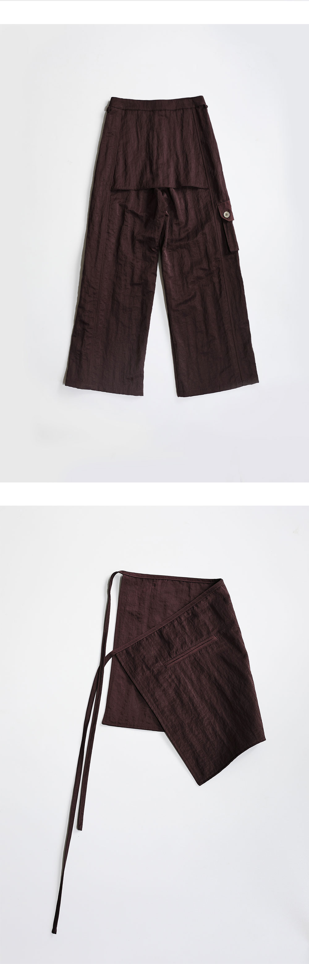 생긴스튜디오 스커트 랩 와이드 팬츠 버건디