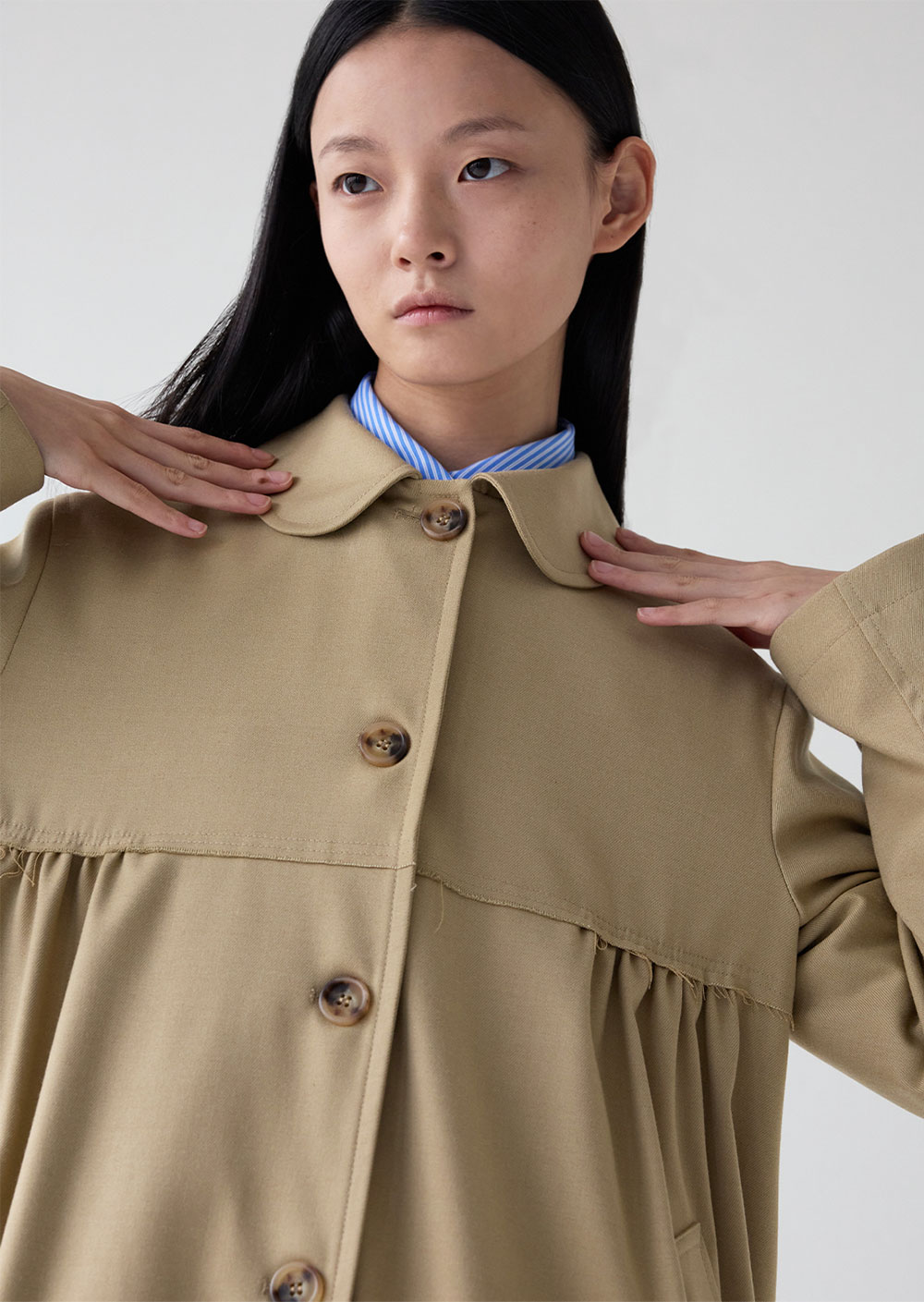 생긴스튜디오 셔링 하프 트렌츠 코트 베이지