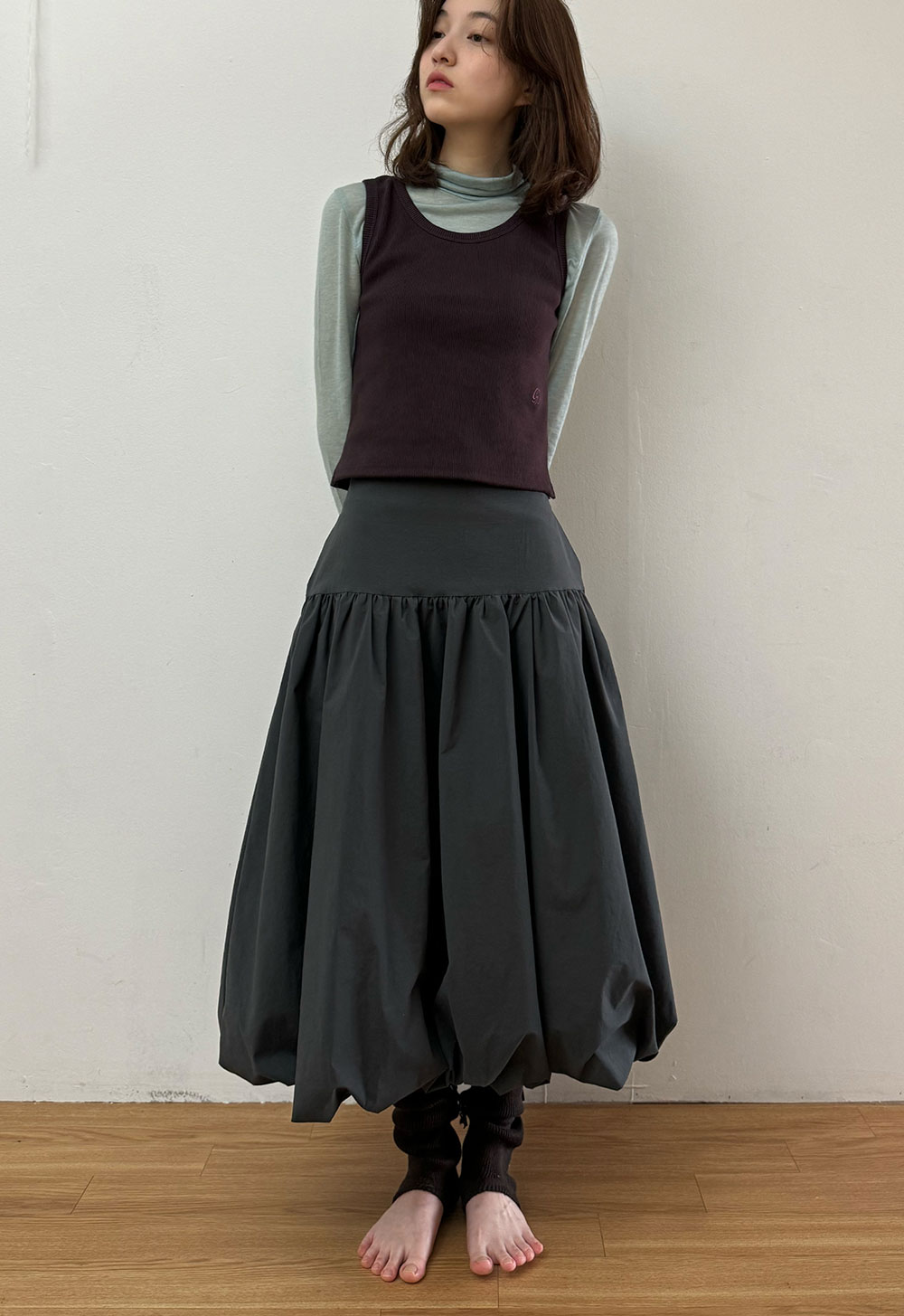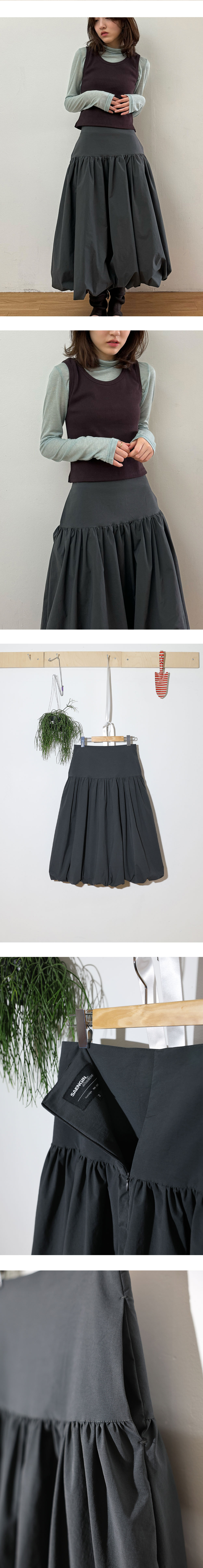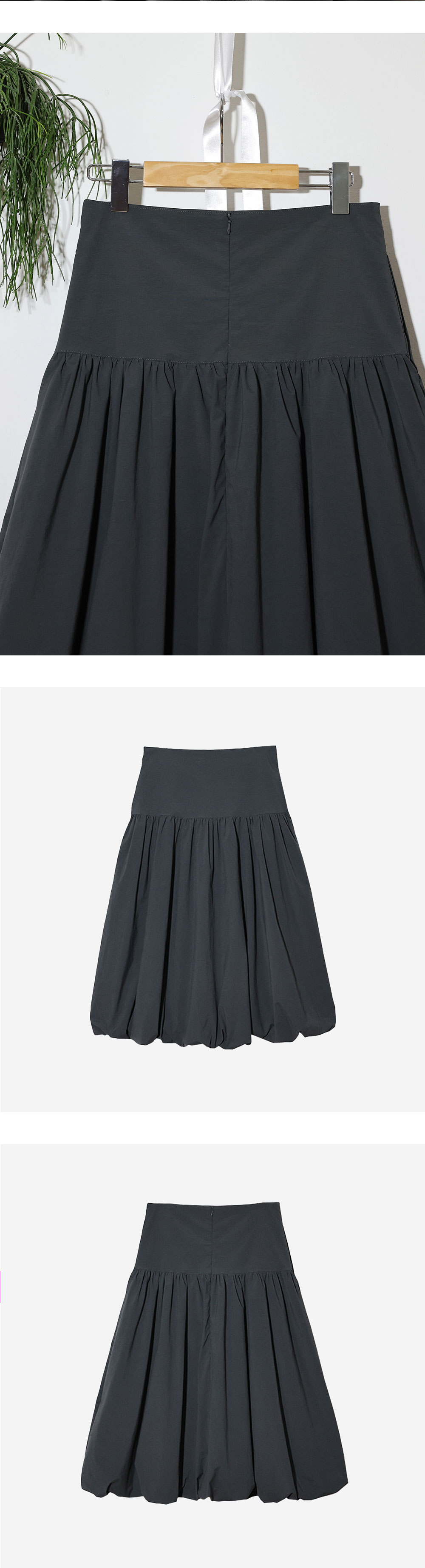 볼륨감 있는 미디엄 기장의 스커트입니다. 긴 지퍼로 입고 벗을 때 불편함이 없습니다. 지퍼를 다 올렸을 때 스판이 섞인 소재로 허리를 편안하게 잡아주면서도 데일리하고 클래식하게 누구나 편안하게 즐기 실 수 있습니다.