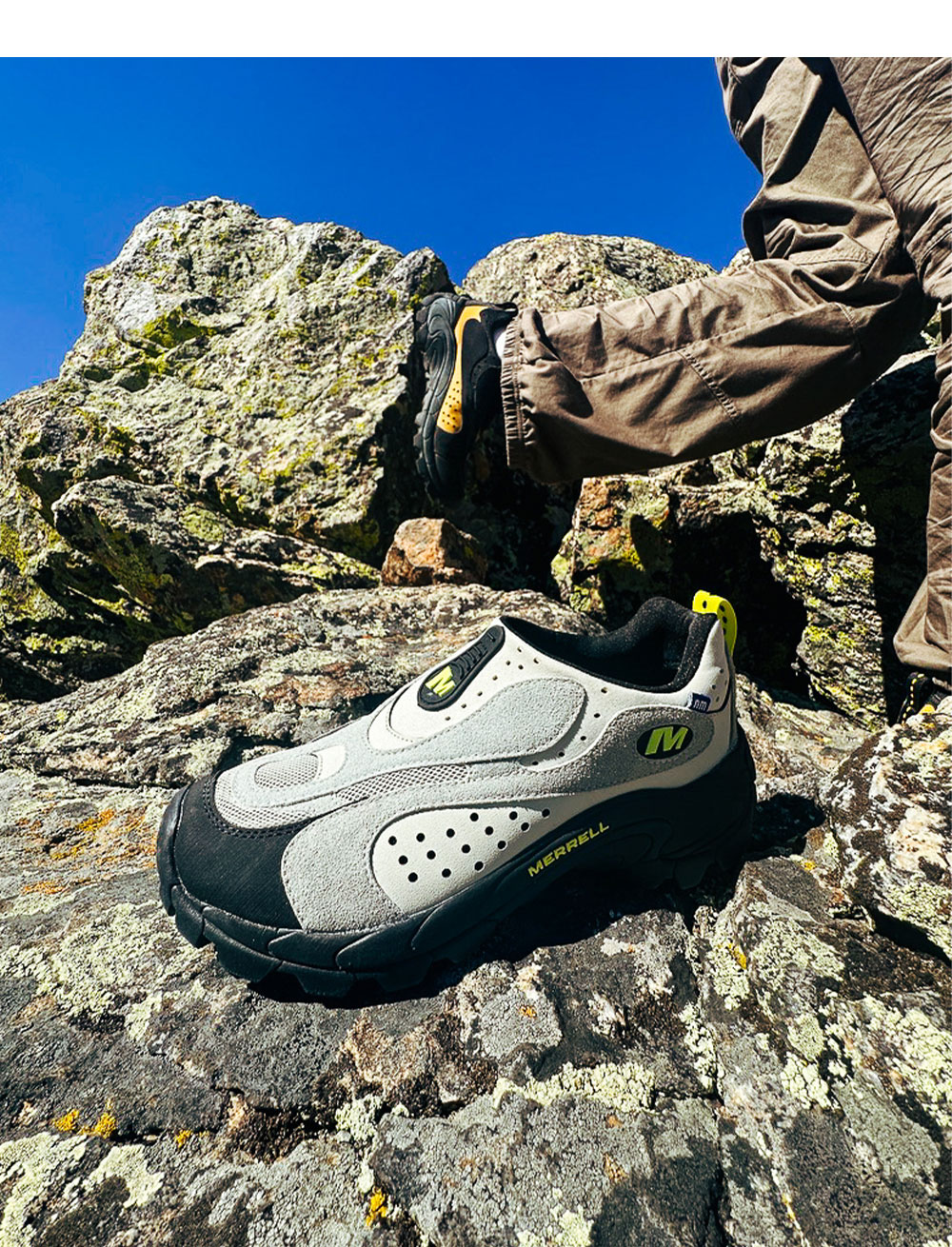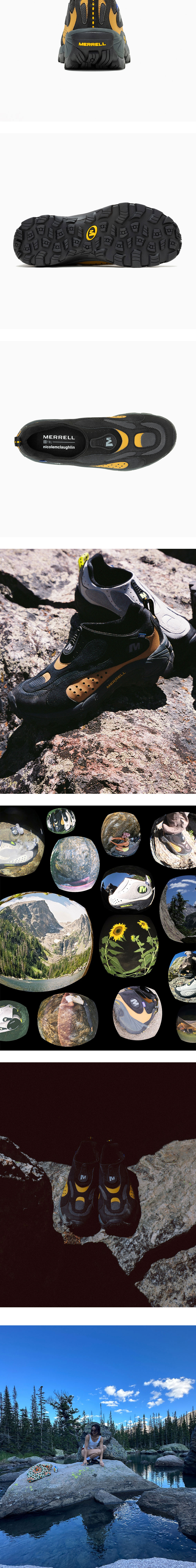 12월 13일 수요일 오전 11시 판매 예정입니다. 뉴욕 기반으로 활동하는 디자이너 Nicole McLaughlin과의 콜라보레이션 제품으로 재활용 소재에 중점을 두고 제작되었습니다. Sustainability와 Upcycling을 최우선으로 하는 McLaughlin의 디자인 정신에 충실하여 어퍼는 재활용 헤더 메시, 폼, 스웨이드를 포함한 혼합직물로 제작되었으며, 미드솔은 고무칩이 포함되어 버핑처리된 재활용 EVA로 만들어졌습니다. - 100% 재활용 천연가죽 스웨이드, 합성가죽, 메시 어퍼 - 신고 벗기 편한 Neoprene Stretch Collar - 100% 재활용 Webbing, 통기성 Mesh, Footbed Cover, EVA Foam Footbed - 뒤꿈치 충격을 줄여주고 안정성을 높여주는 Merrell Air Cushion 내창 - 뛰어난 접지력의 Merrell Sticky Rubber 아웃솔