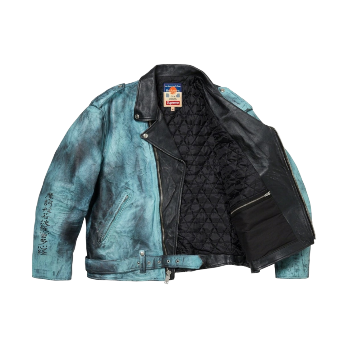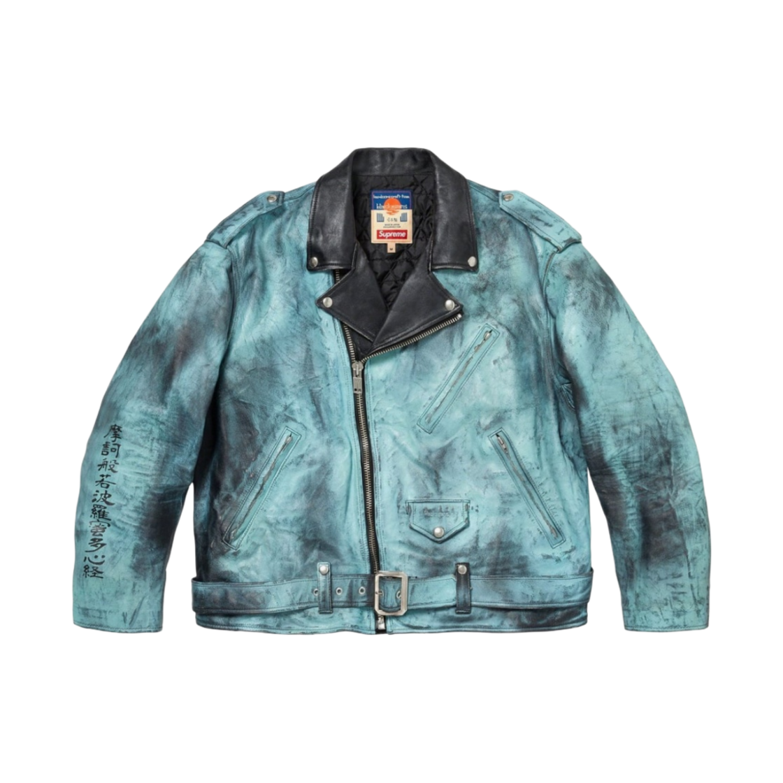슈프림 x 블랙민즈 페인티드 레더 모터사이클 자켓 라이트 그린 - 23FW