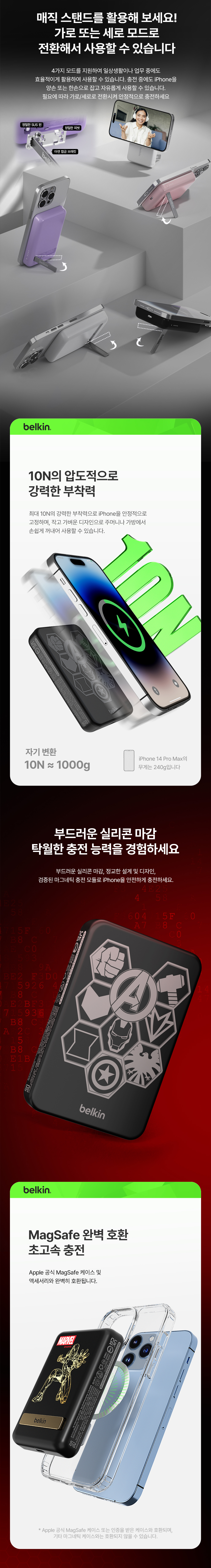벨킨 마블 아이언맨 캐릭터 5000mAh 맥세이프 마그네틱 무선 보조배터리