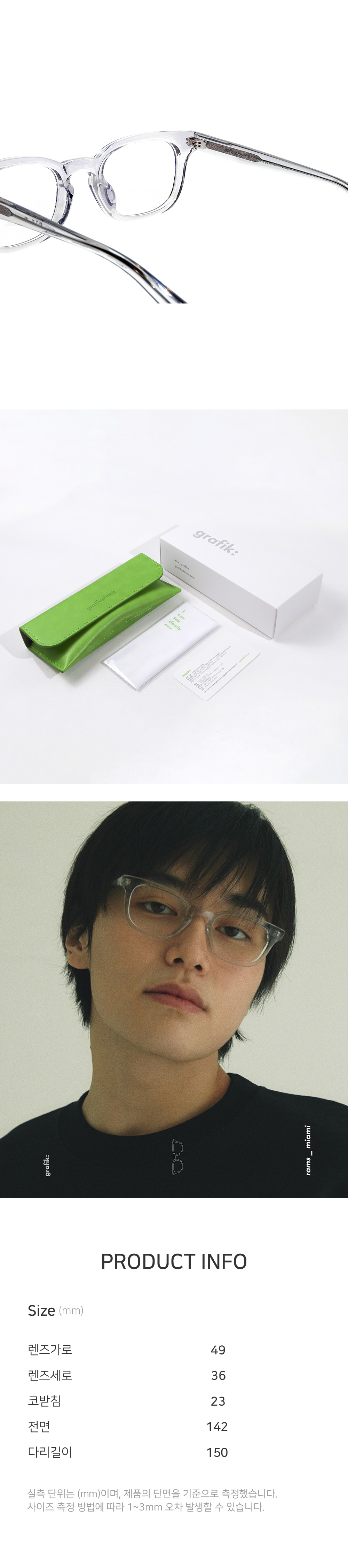 *안경테에 장착되어있는 렌즈는 프레임의 형태의 변형을 막기 위한 플라스틱 데모렌즈입니다.