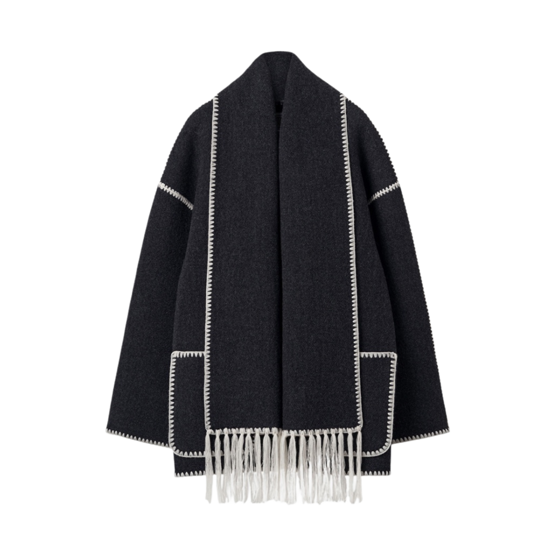(W) Toteme Embroidered Scarf Jacket Dark Grey Melange