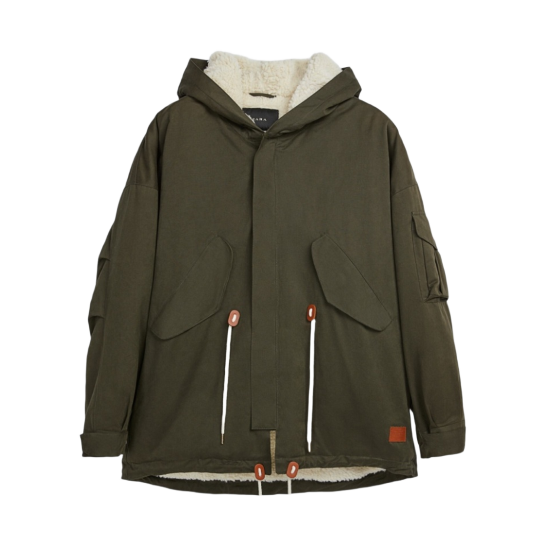 Zara Faux Shearling Combi Parka Khaki
