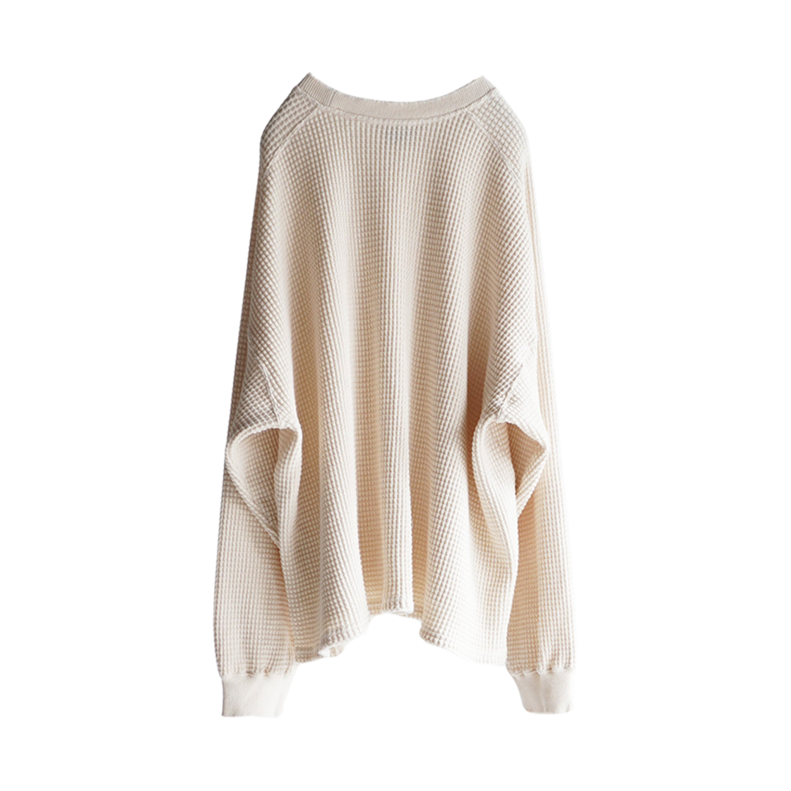 Ancellm Damage Heavy Waffle Oversized LS T-Shirt Ivory