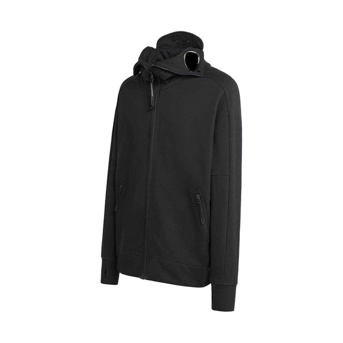 C.P. 컴퍼니 다이애그널 레이즈드 플리스 지퍼 고글 후드 블랙 - 23FW