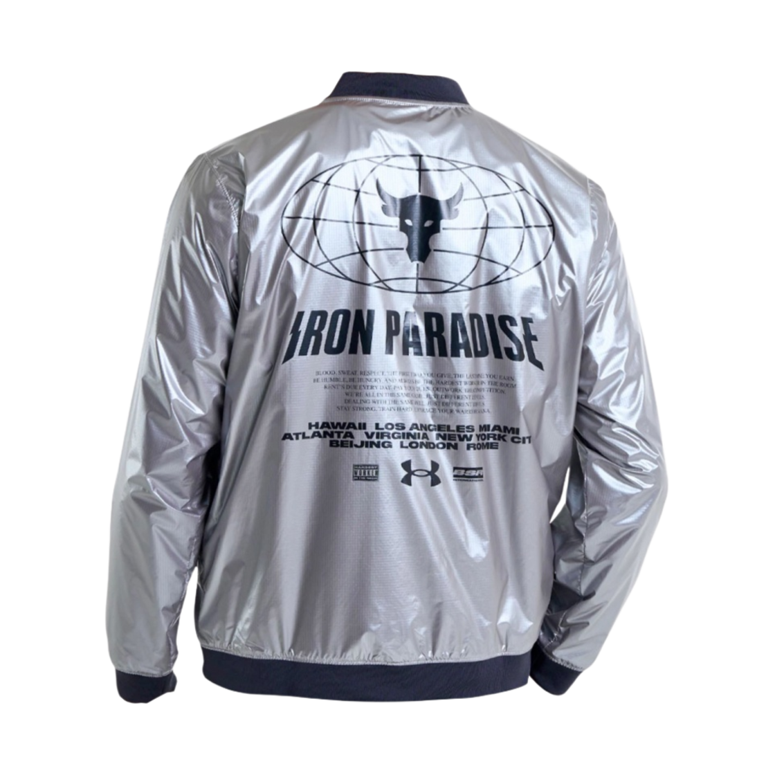 Under Armour Project Rock Disrupt Bomber Jacket Metallic Tin Black