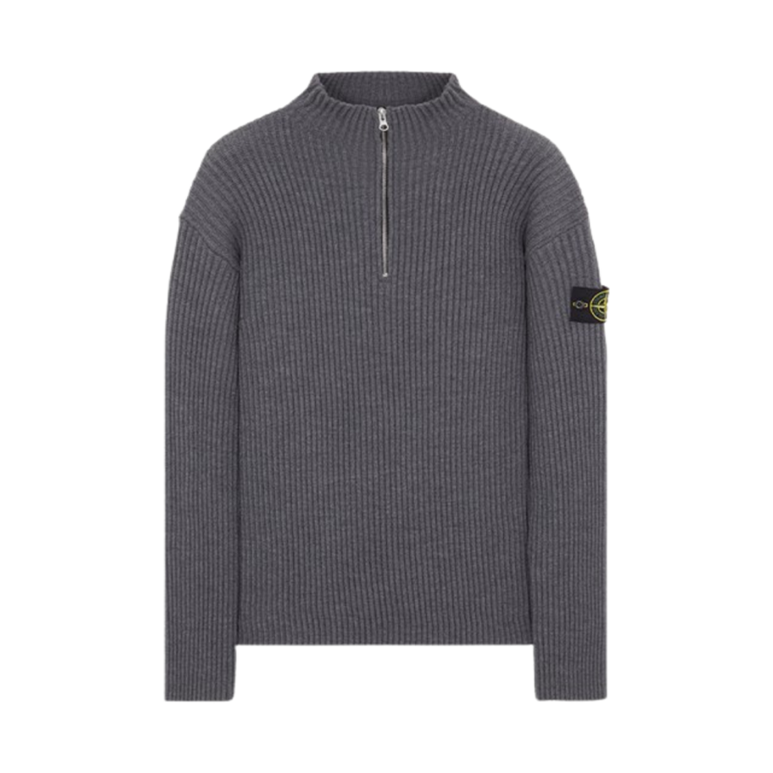 스톤 아일랜드 516C2 풀 립 울 하프 집업 니트 다크 그레이 멜란지 - 23FW